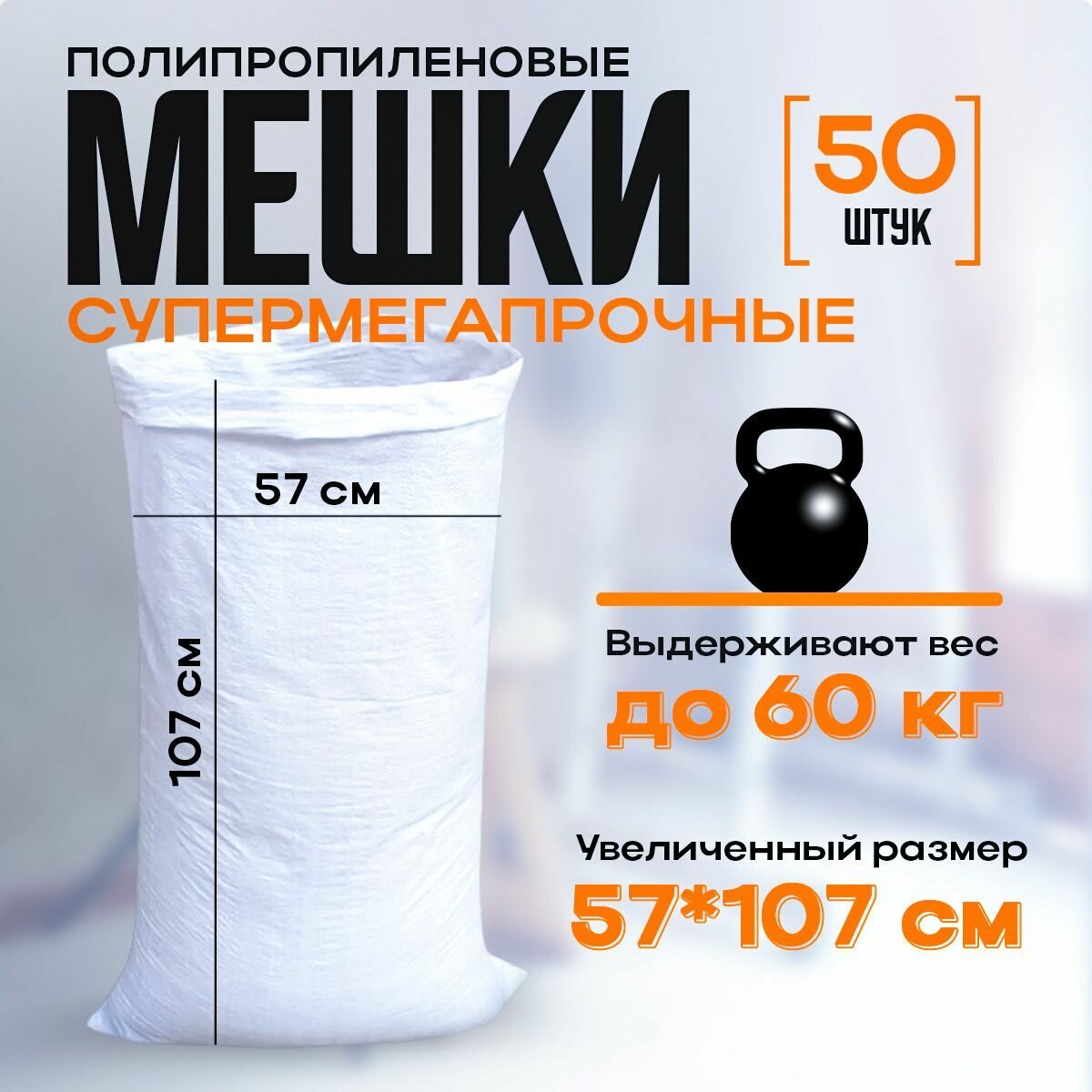 Мешки для строительного мусора удлиненные, полипропиленовые, 57*107. белые