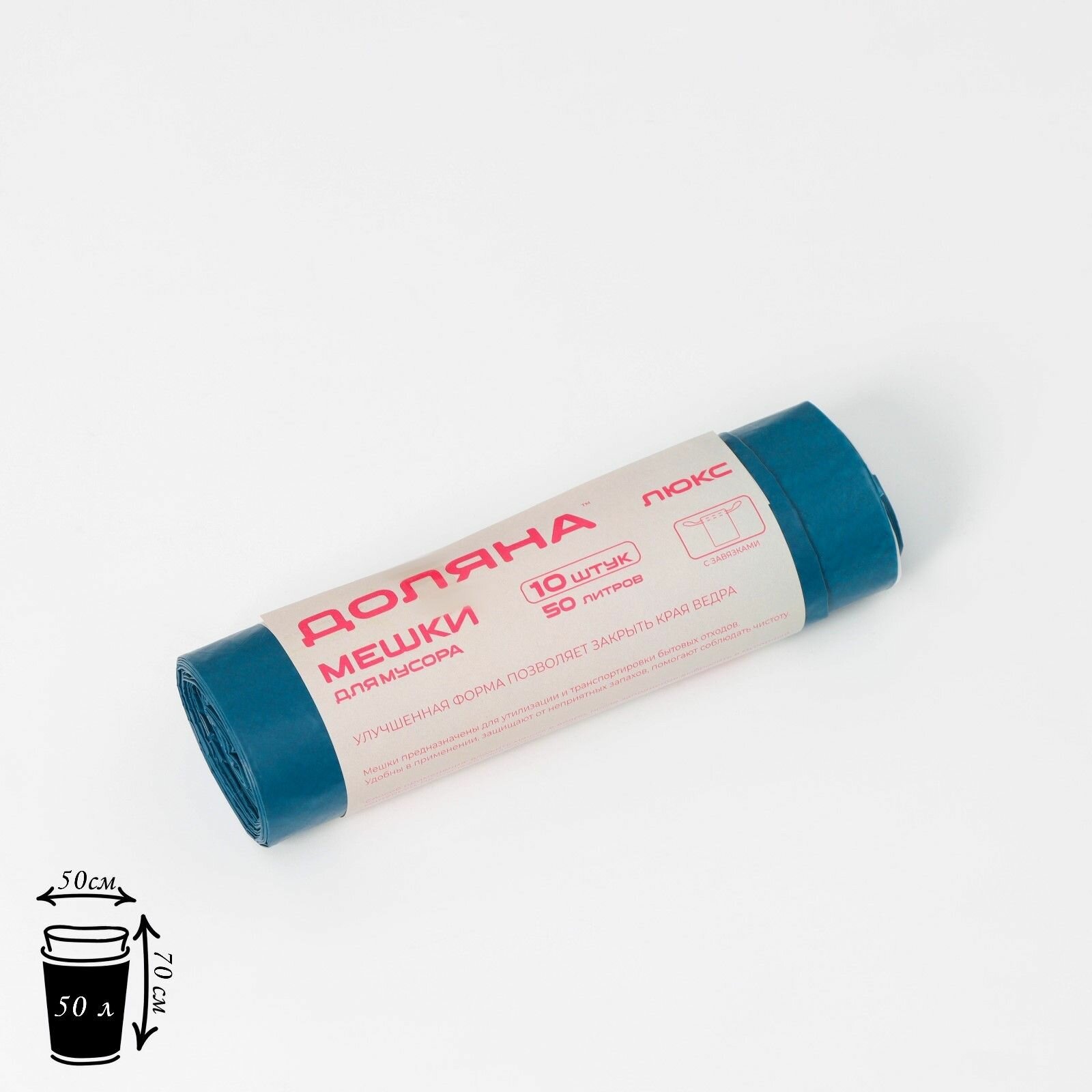 Купить Мешки для мусора с завязками Доляна "Люкс", 50 л, 25 мкм, 50х70 см, ПВД, 10 шт, цвет синий
