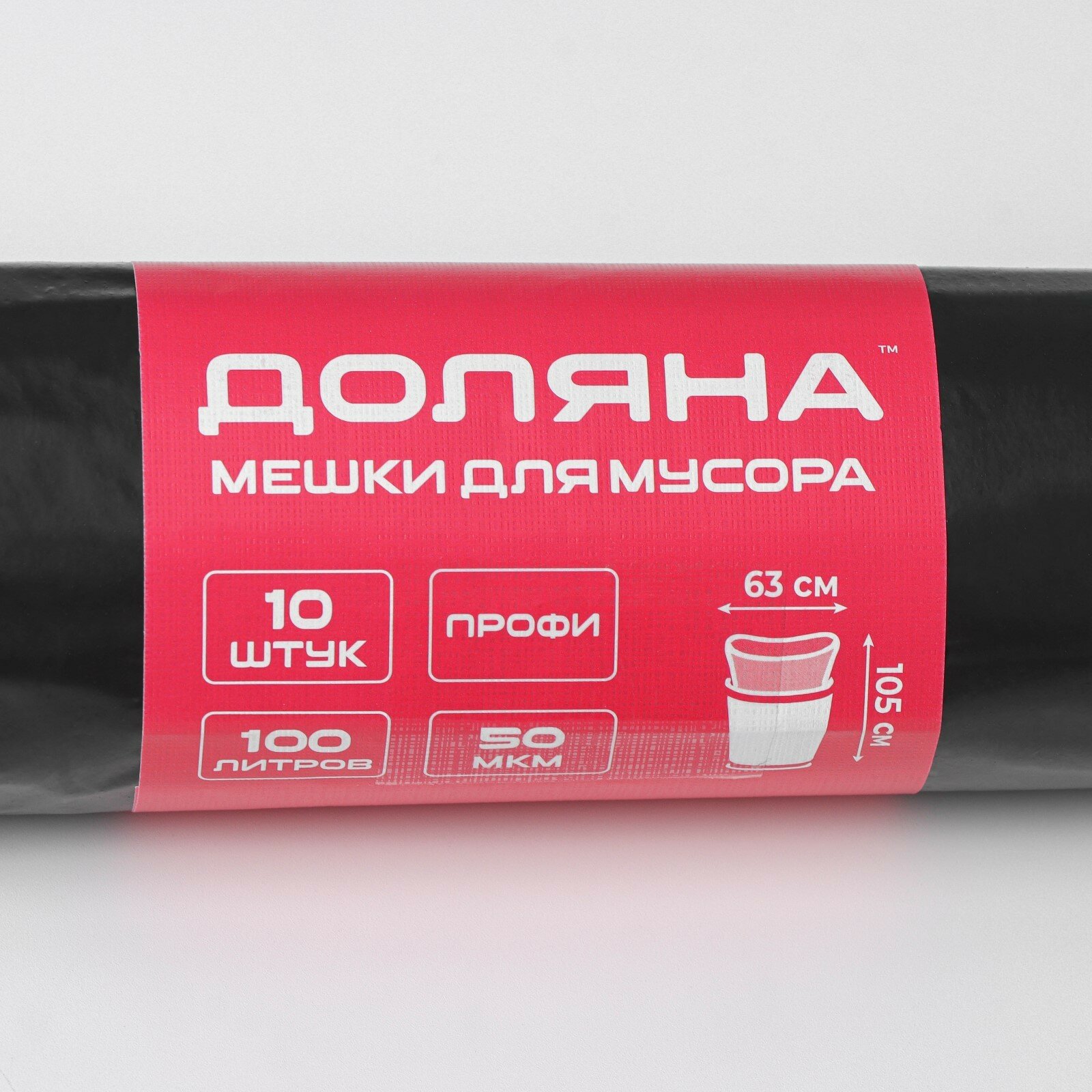 Купить Мешки для мусора Доляна «Профи», 100 л, 63×105 см, 50 мкм, ПВД, 10 шт, цвет чёрный