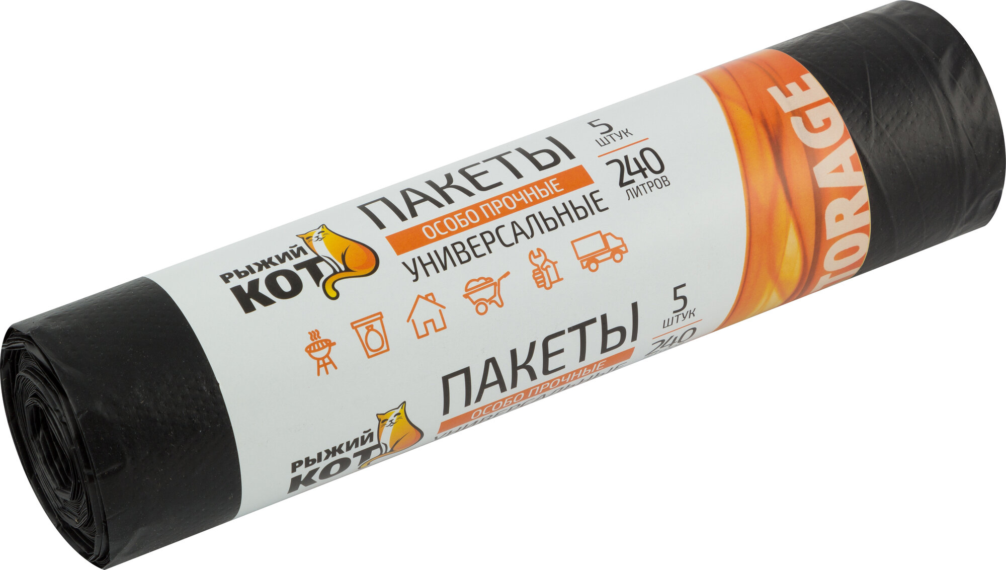 Купить Пакеты универсальные особо прочные "Рыжий Кот" (310421), 240 л, 5 шт, 43 мкм