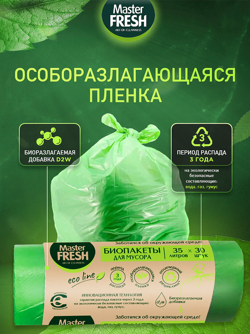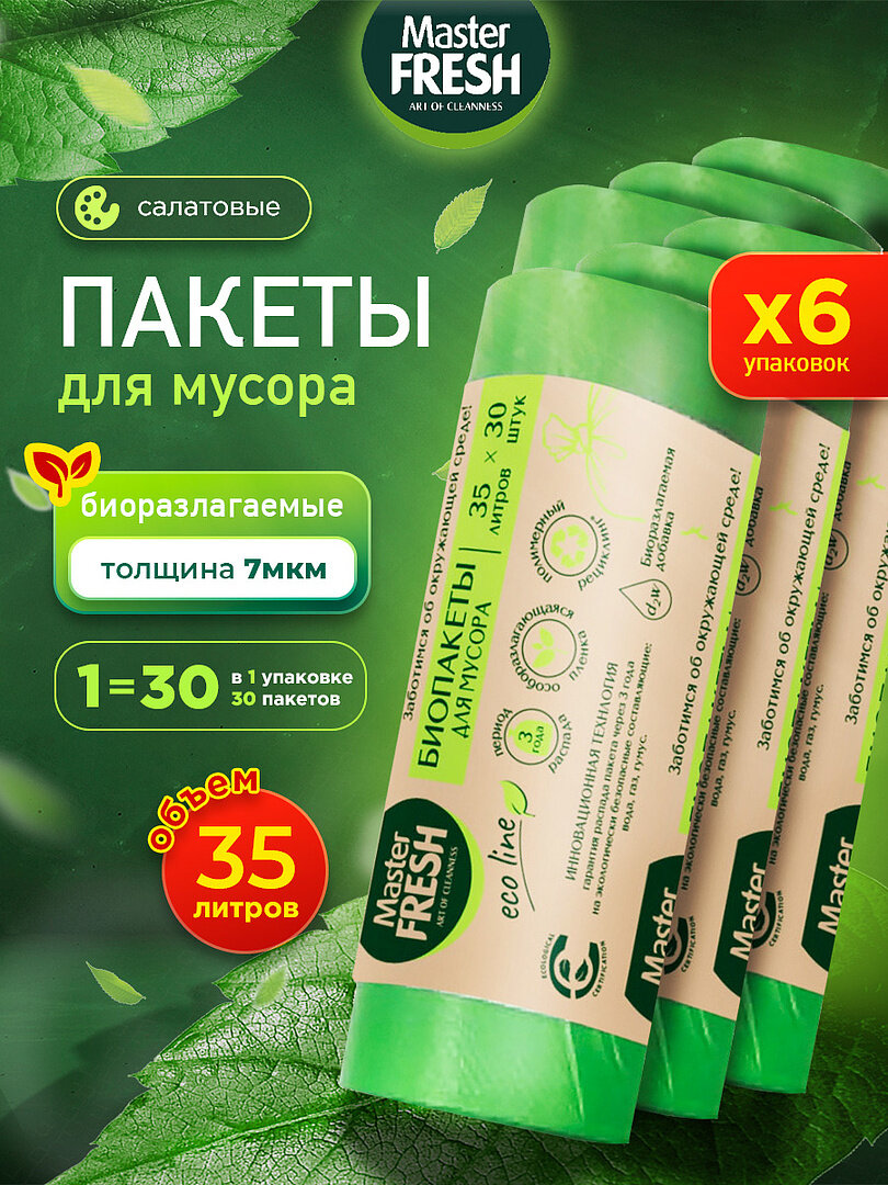Пакеты для мусора Master Fresh набор био салатовые 7мкм 35л/30шт*6шт интересное: