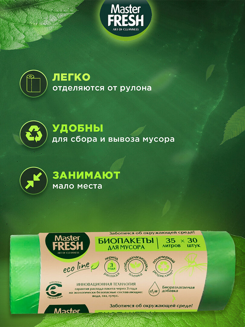 Купить Пакеты для мусора Master Fresh набор био салатовые 7мкм 35л/30шт*6шт