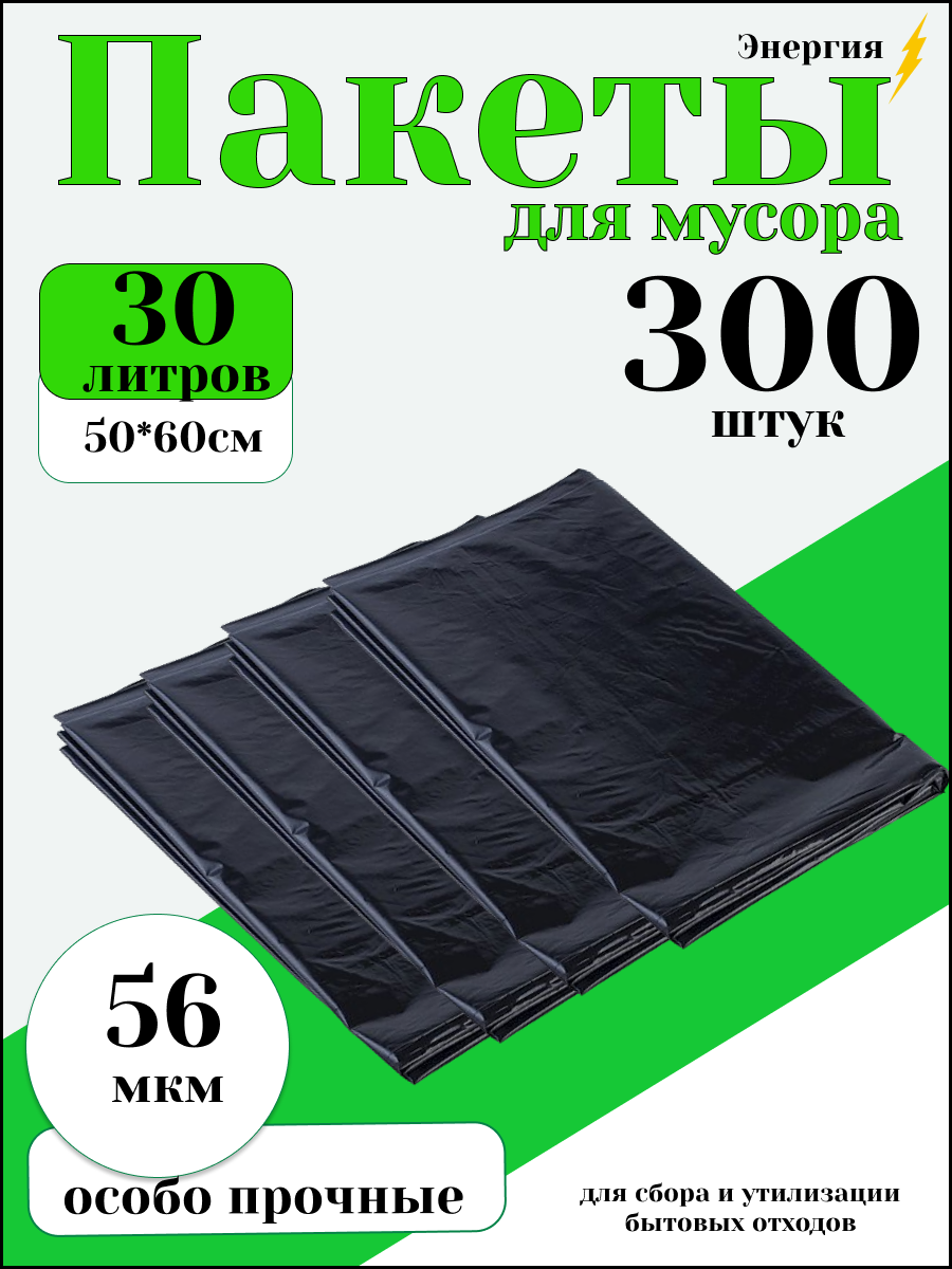Купить Пакеты и мешки для мусора прочные56мкм. 50х60см.-300шт.