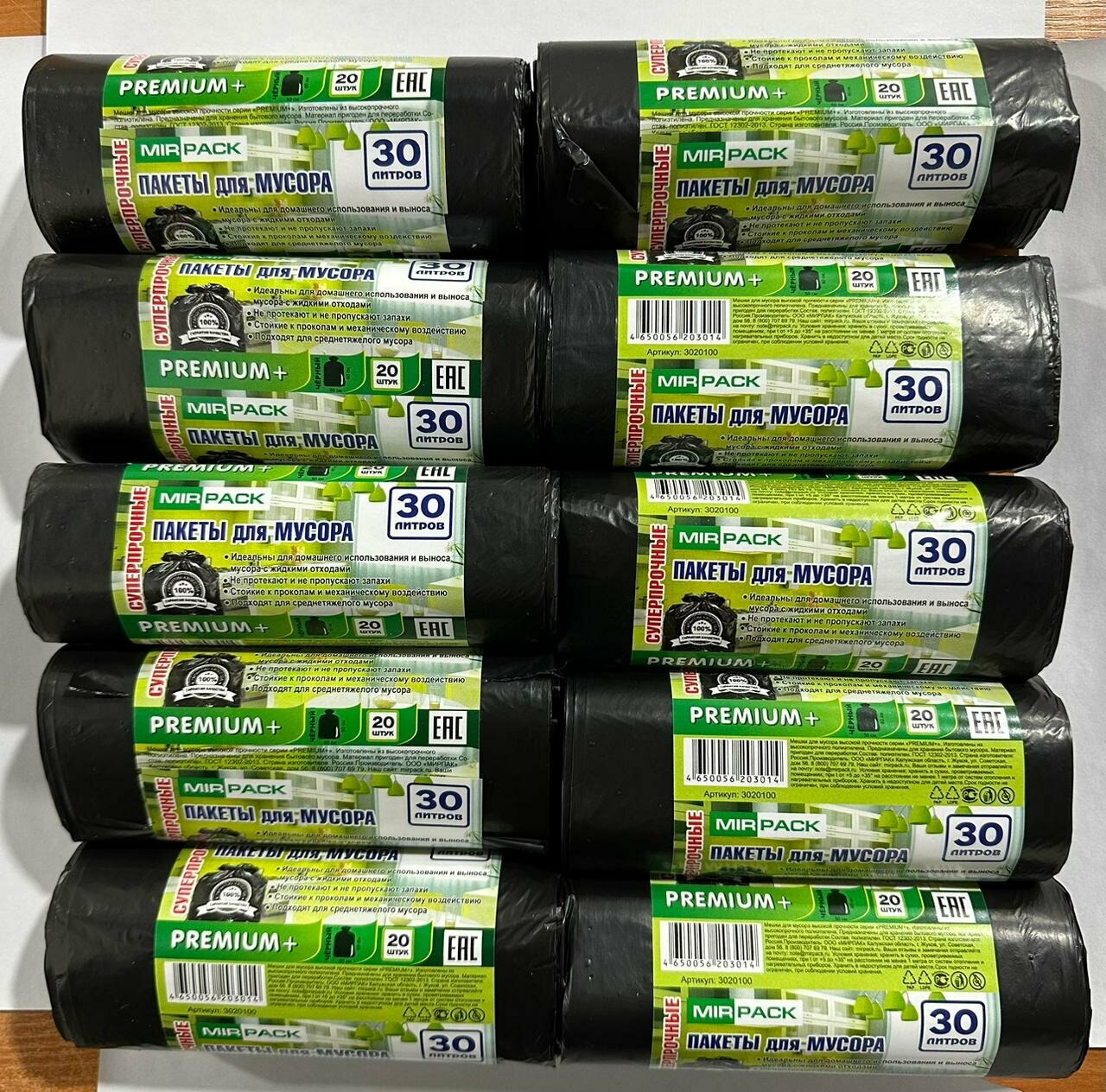 Мешки для мусора MIRPACK PREMIUM+ Супер прочные 30 л, 10 шт, черный набор из 10 рулонов интересное: