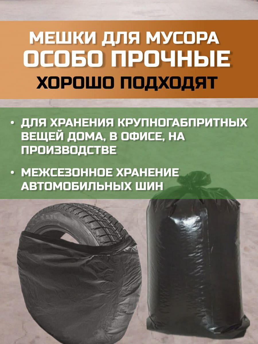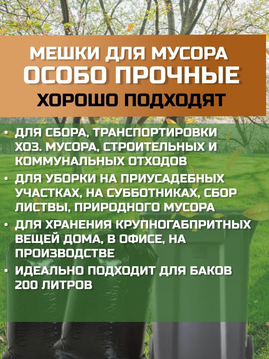 Мешок мусорный 180 литров, сверхпрочный, для строительного мусора, для уборки территории, для уборки после ремонта