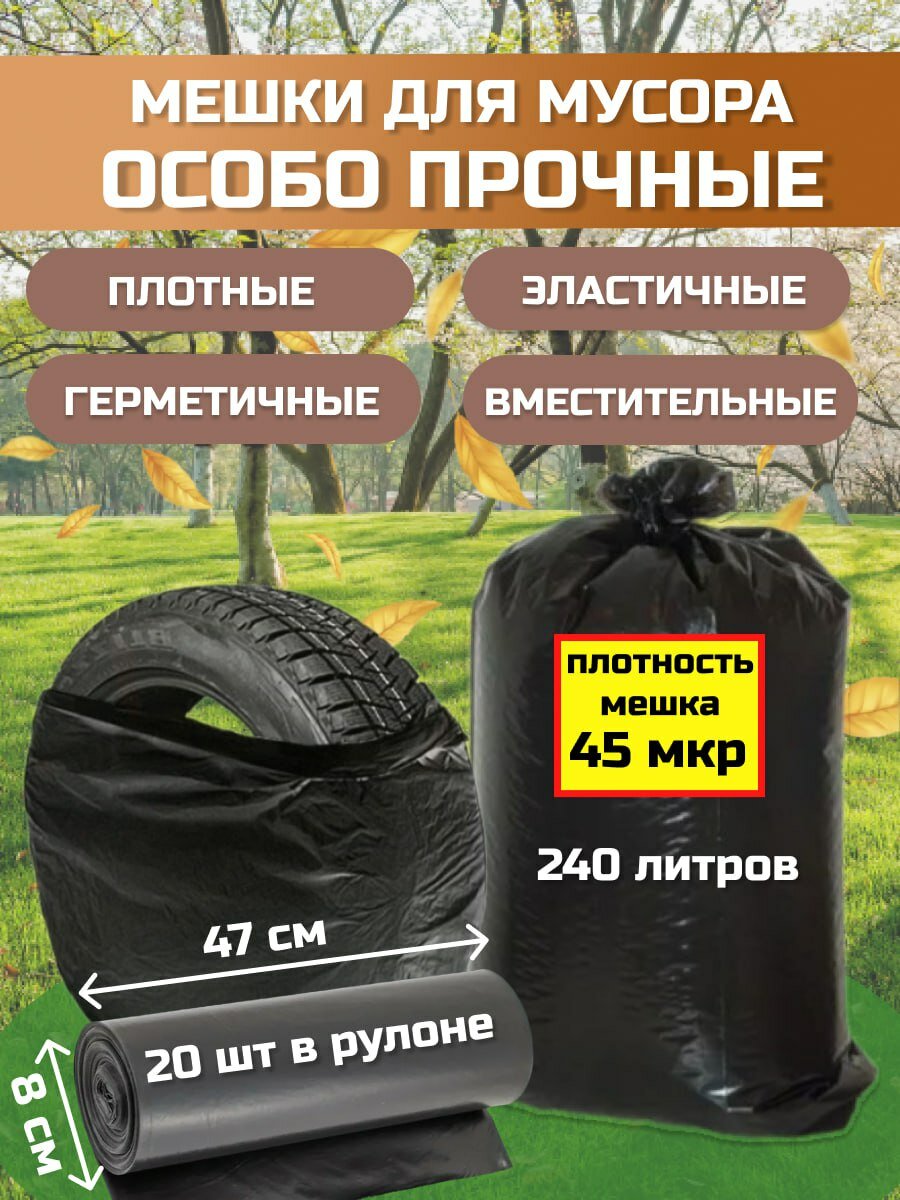 Мешки для мусора прочные плотные 45 мкр черные 20 штук по 240 л интересное: