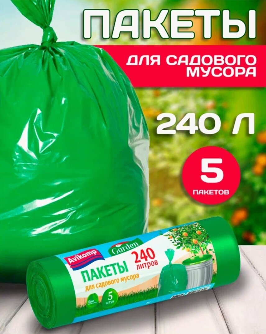 Купить Мешки для мусора Avikomp Био для садового мусора 240 л, 5 шт, зеленый
