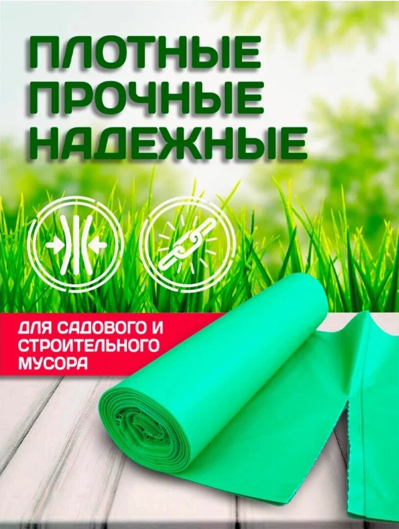 Мешок мусорный 180 литров, сверхпрочный, для строительного мусора, для уборки территории, для уборки после ремонта
