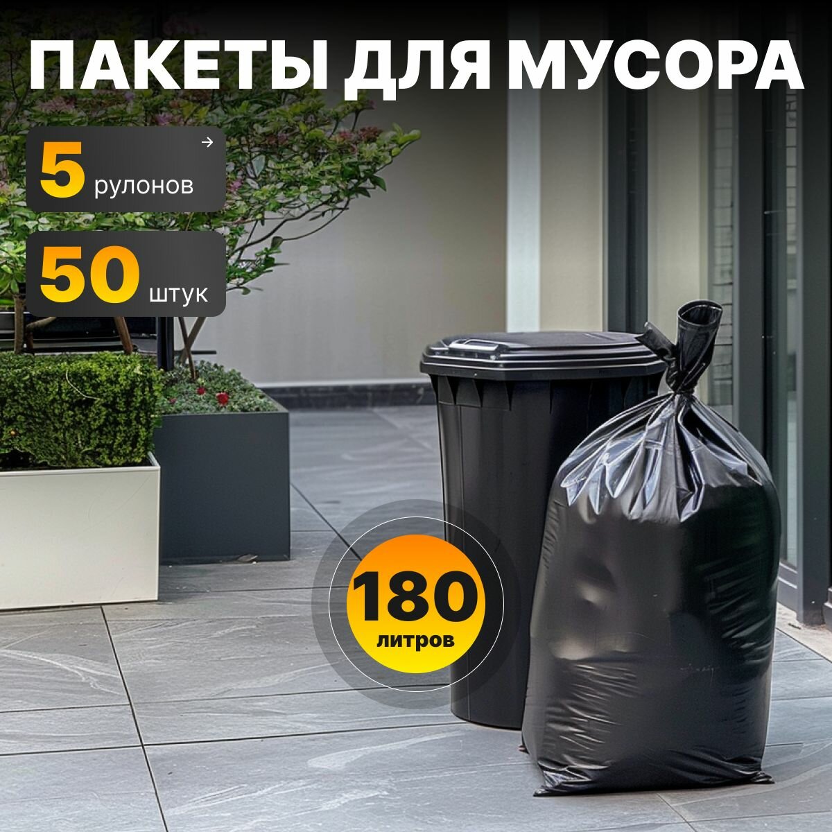Купить Мешки (пакеты) для мусора 180 л, прочные 50 шт, 5 упаковок, для хранения