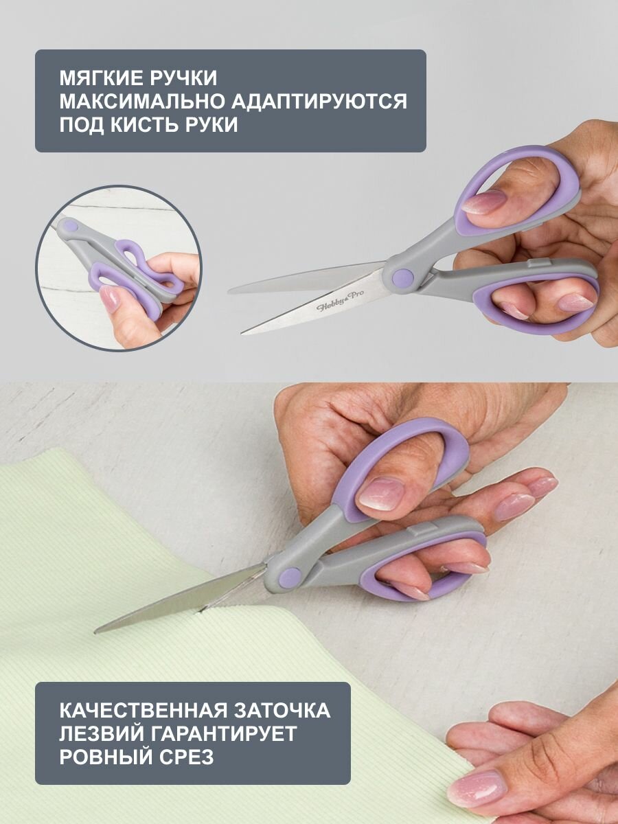 Ножницы канцелярские для дома и офиса с силиконовыми ручками SOFT, 18,5 см/7,25', Hobby&Pro, 590453 (светло-фиолетовый)