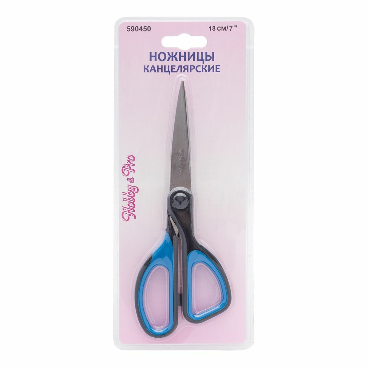 Купить Ножницы канцелярские с мягкими ручками SOFT, 18 см/7', Hobby&Pro, 590450 (синий, черный)