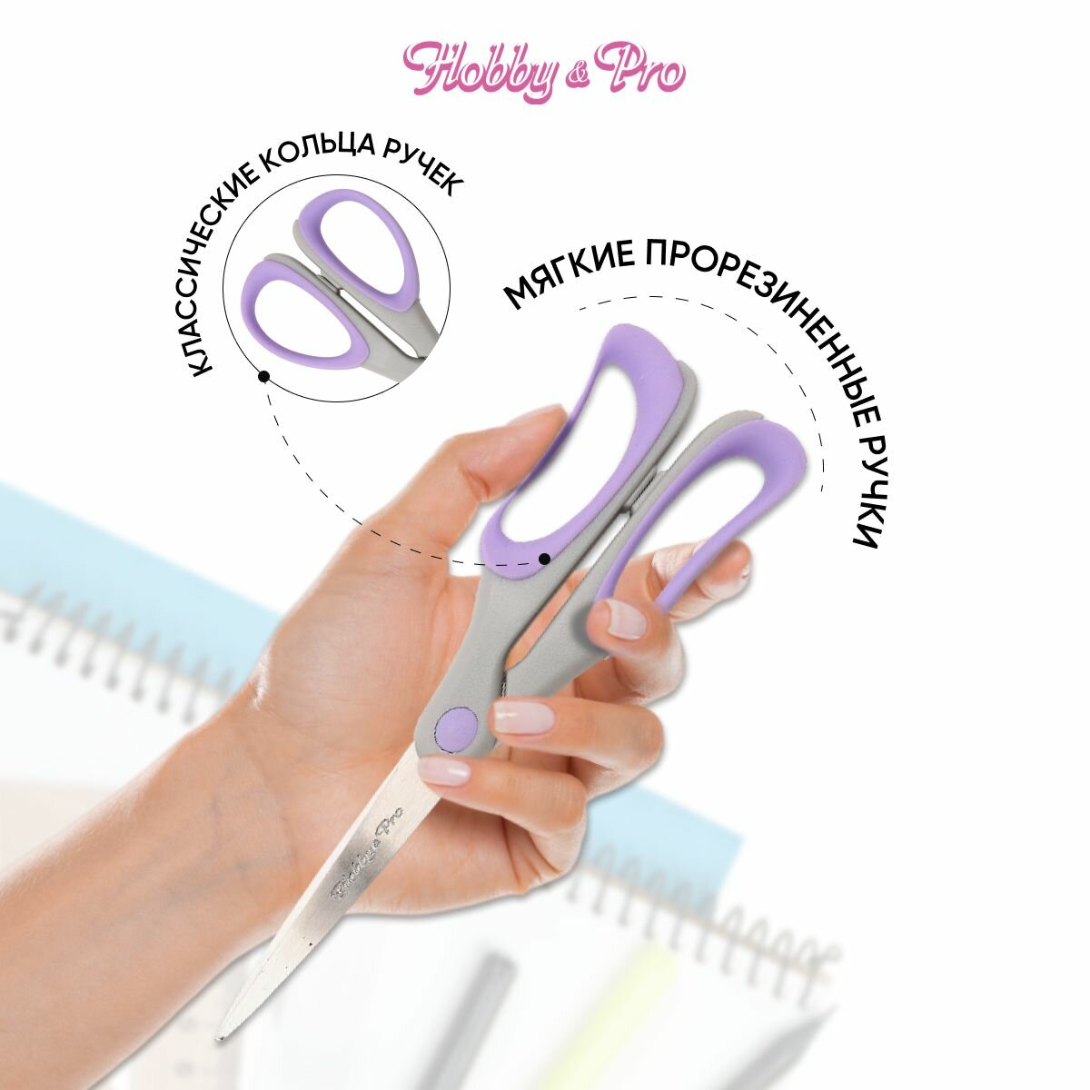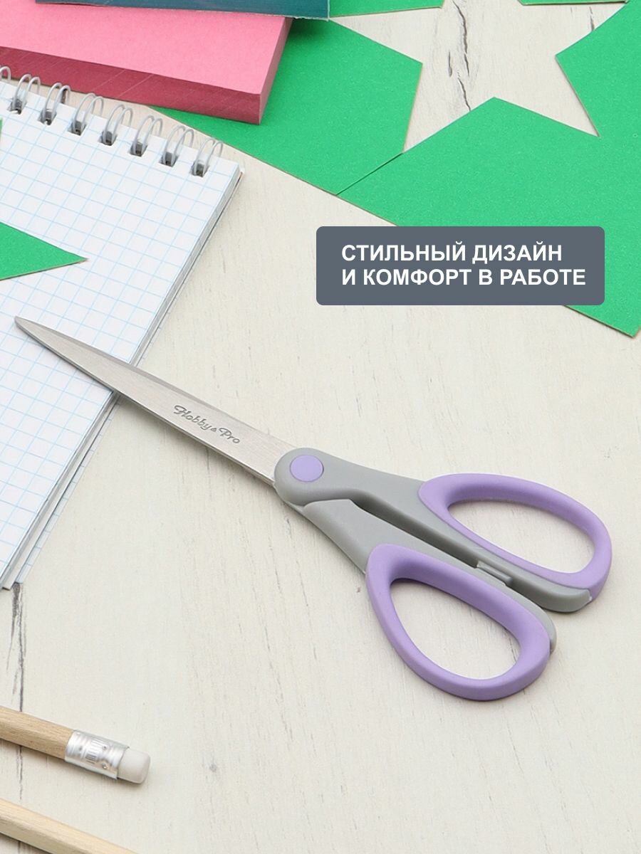 Ножницы канцелярские для дома и офиса с силиконовыми ручками SOFT, 18,5 см/7,25', Hobby&Pro, 590453 (светло-фиолетовый)