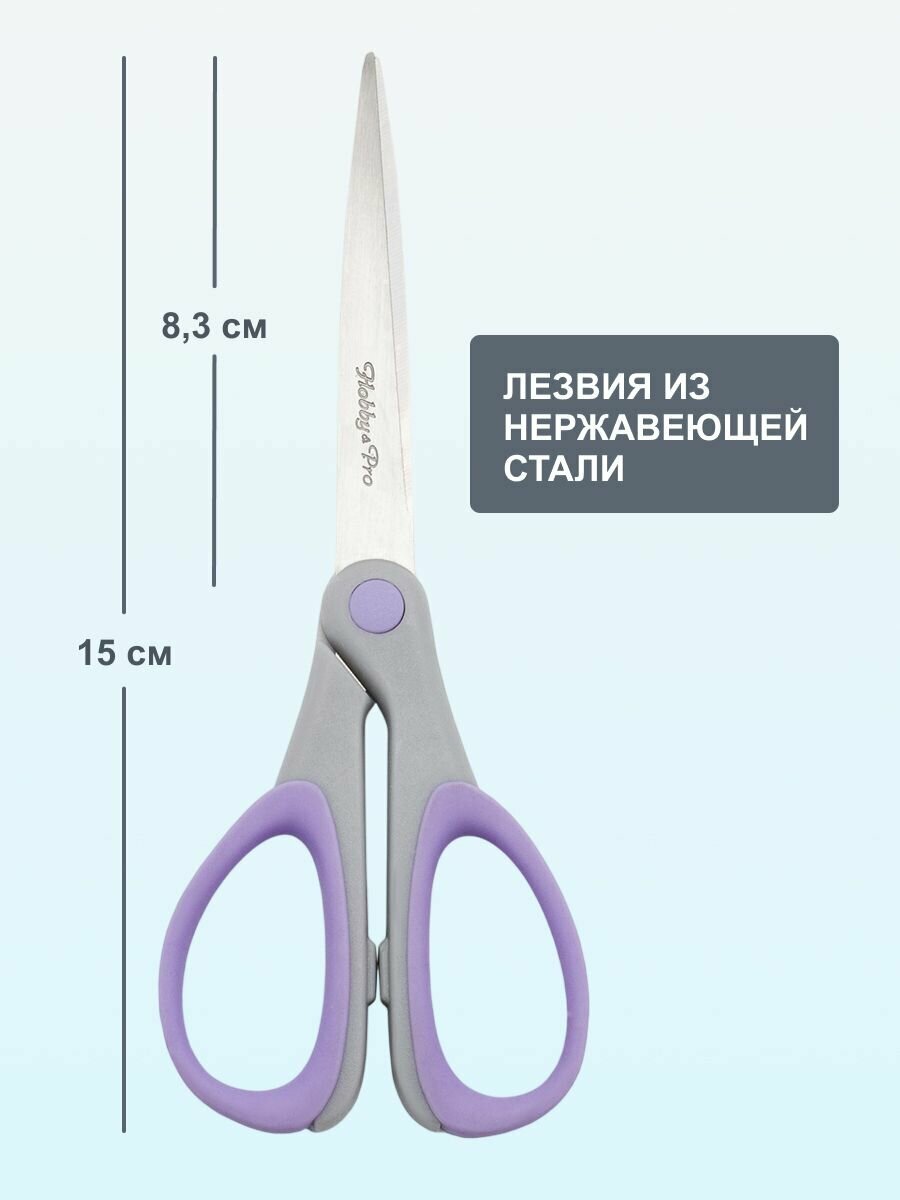 Купить Ножницы канцелярские для дома и офиса с силиконовыми ручками SOFT, 15 см/6', Hobby&Pro, 590452 (светло-фиолетовый)