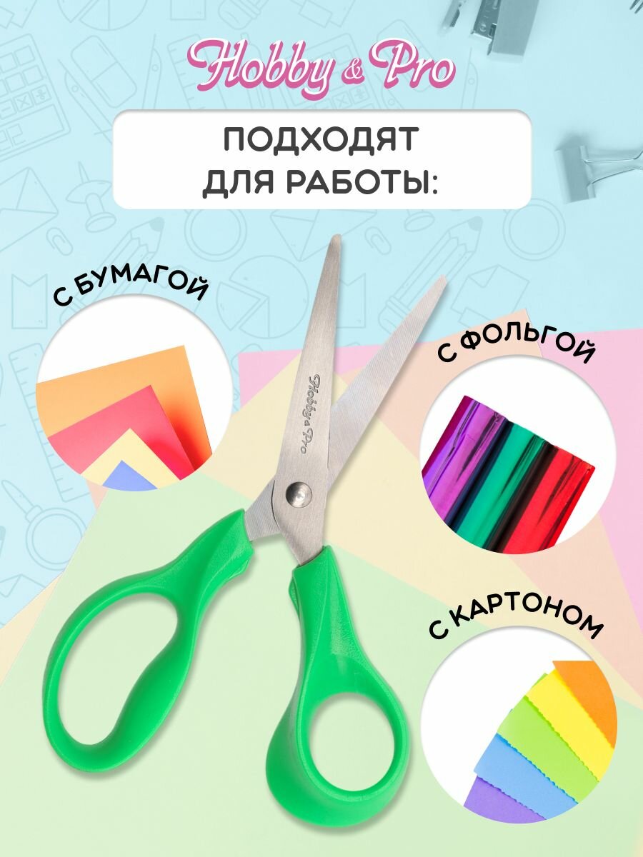 Купить Ножницы канцелярские школьные с закругленными концами, 14 см/5 1/2', Hobby&Pro, 590433 (зеленый)