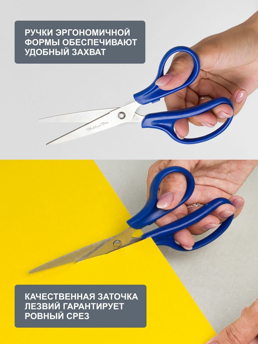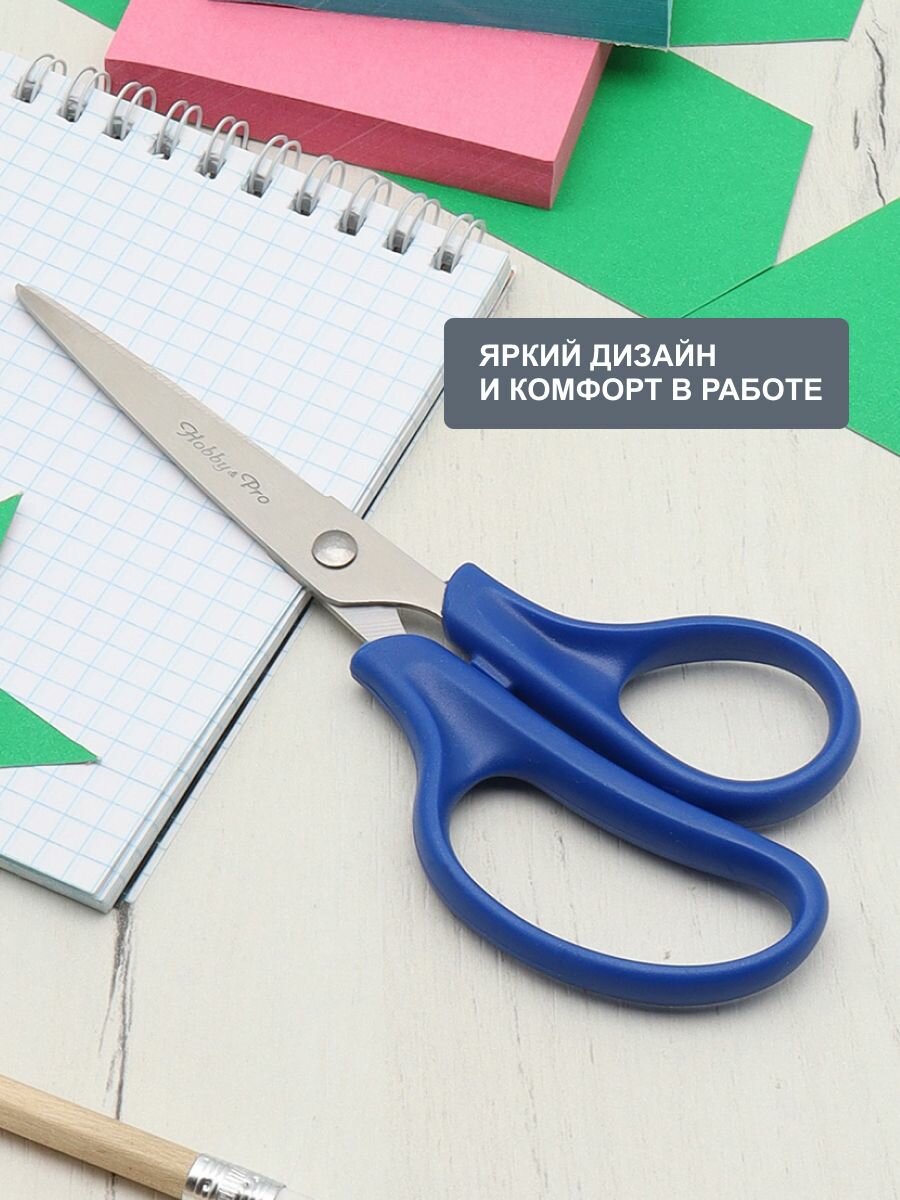 Ножницы канцелярские для школы, дома, офиса, 15 см/6', синие, Hobby&Pro