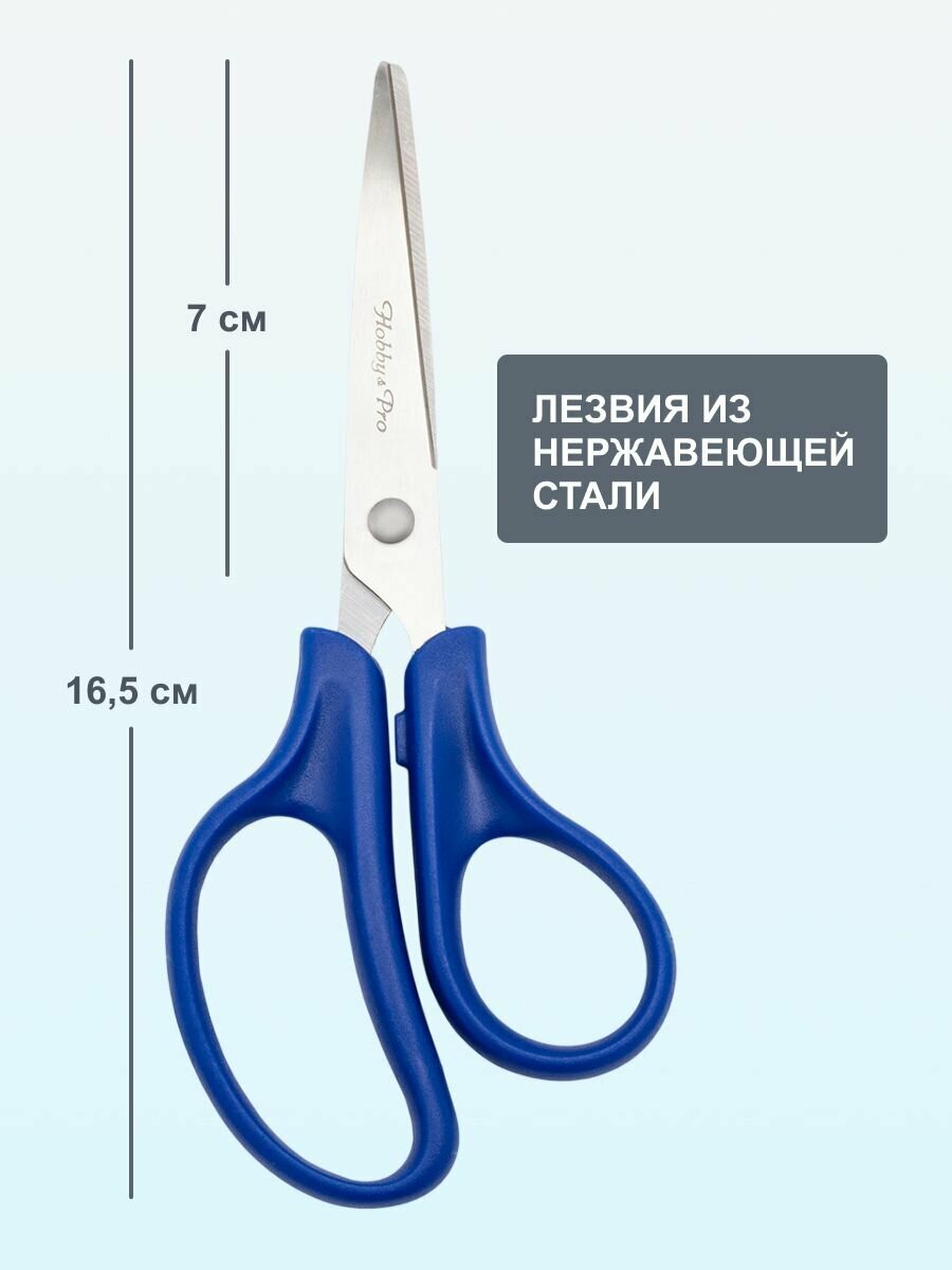 Ножницы канцелярские для дома и офиса, 16,5 см/6 1/2', Hobby&Pro, 590437 (синие)