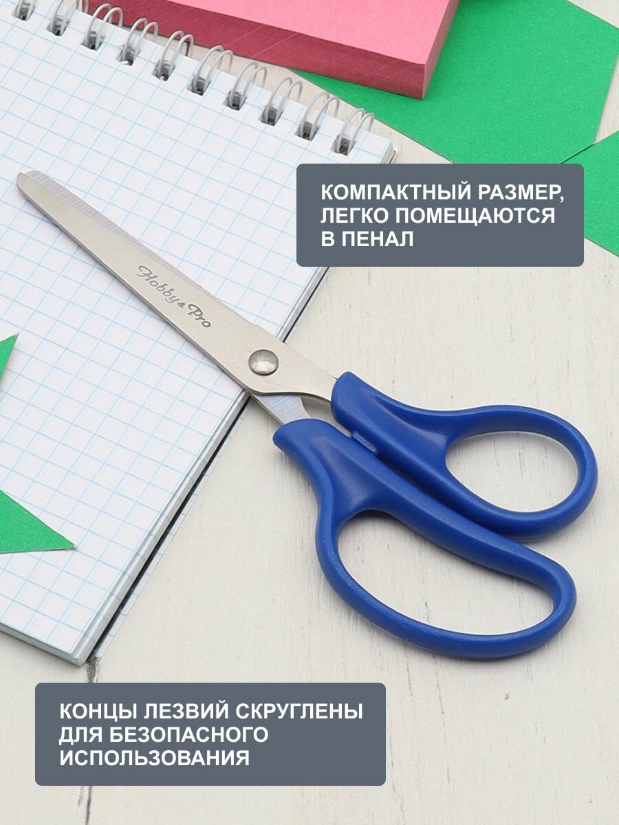 Ножницы канцелярские школьные с закругленными концами, 14 см/5 1/2', Hobby&Pro, 590432 (синий)