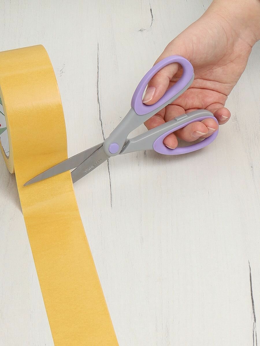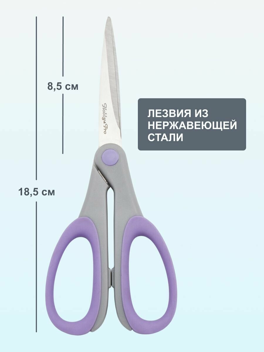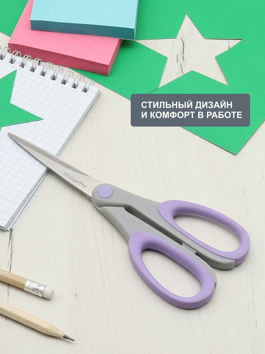 Купить Ножницы канцелярские для дома и офиса с силиконовыми ручками SOFT, 18,5 см/7,25', Hobby&Pro, 590453 (светло-фиолетовый)