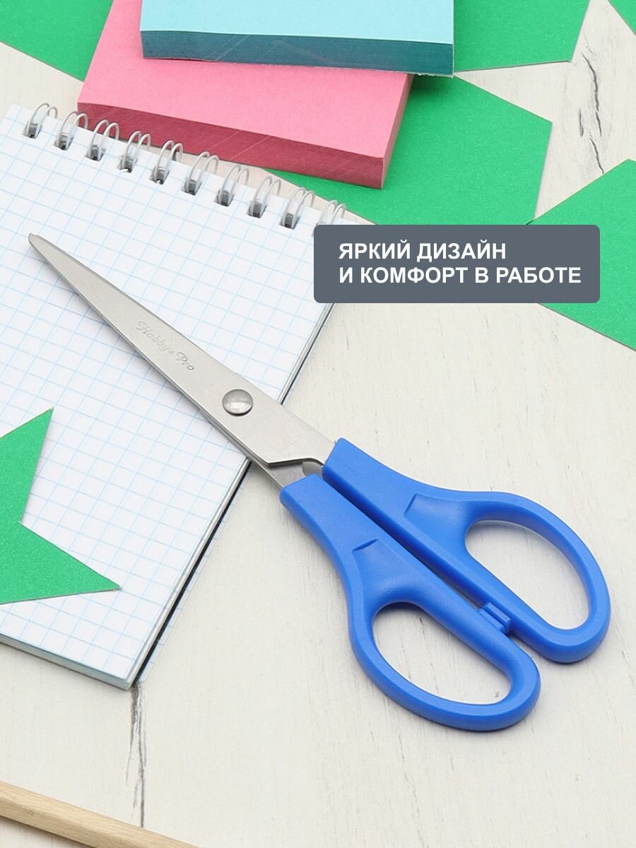 Ножницы канцелярские для школы, дома, офиса, 15 см/6', синие, Hobby&Pro