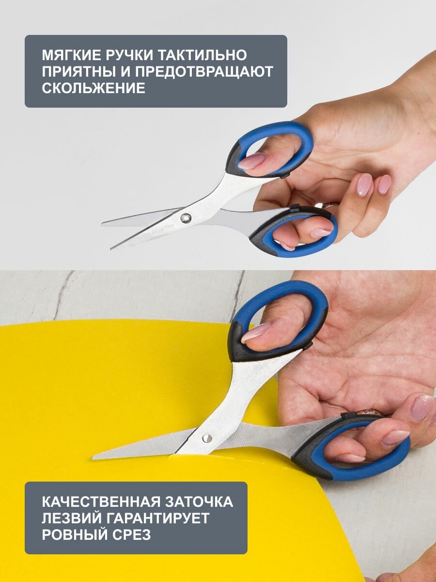 Ножницы канцелярские для дома и офиса с мягкими ручками SOFT, 16,5 см/6 1/2', Hobby&Pro, 590443 (синий, зеленый)