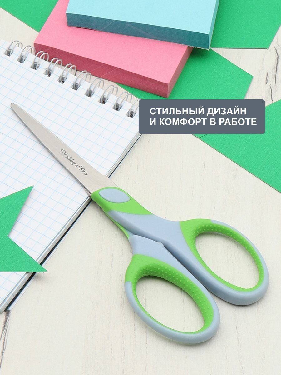 Ножницы канцелярские для дома и офиса с мягкими ручками SOFT, 18 см/7', Hobby&Pro, 590442 (синий, зеленый)