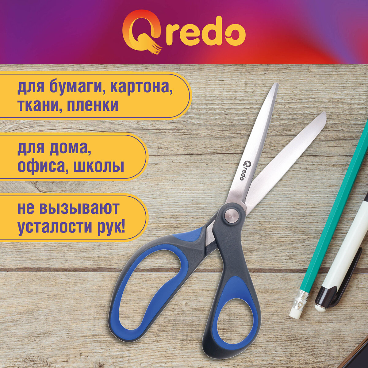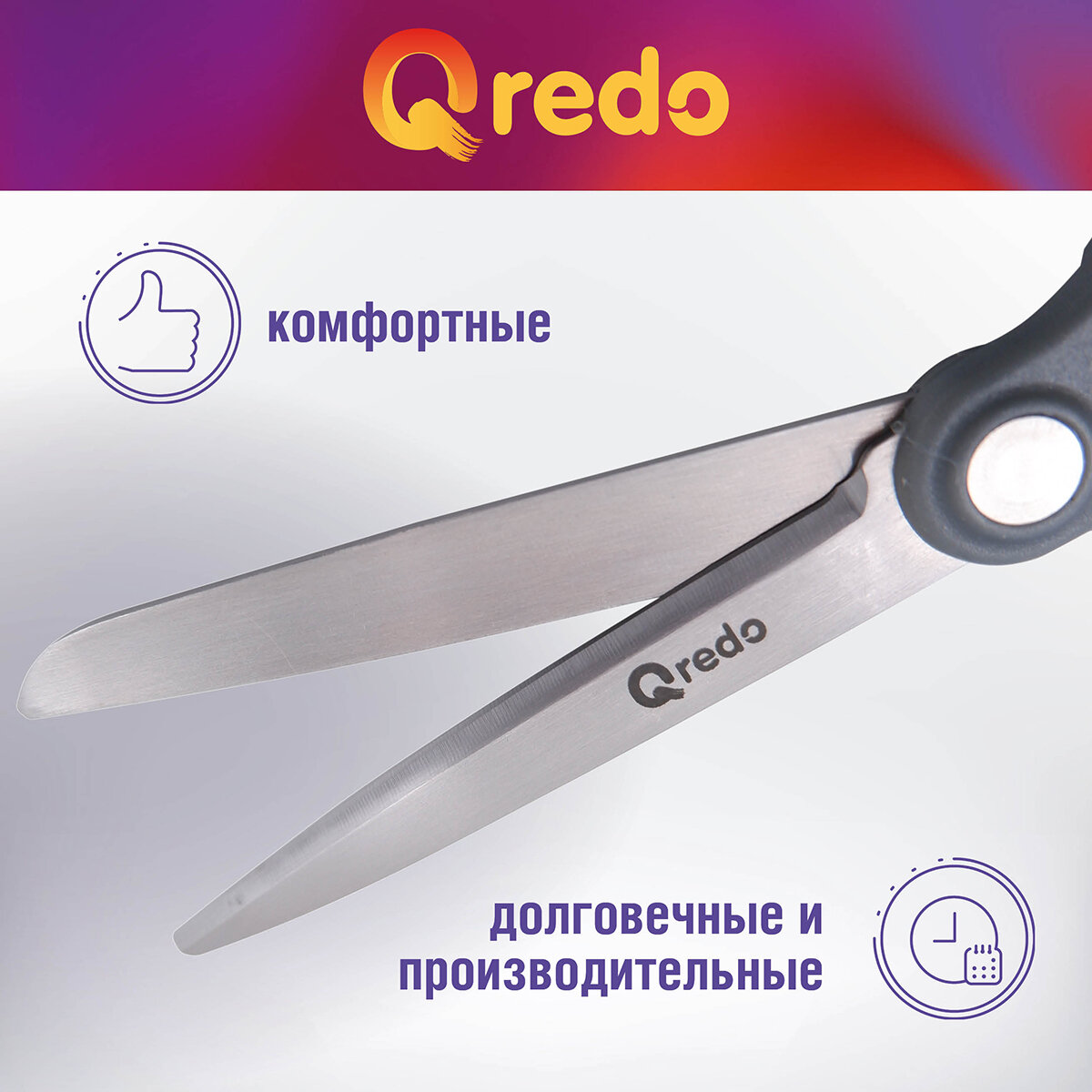 Ножницы 17,8 см QREDO ADAMANT 3D лезвие, эргономичные ручки, серый/синий, пластик, прорезиненные интересное: