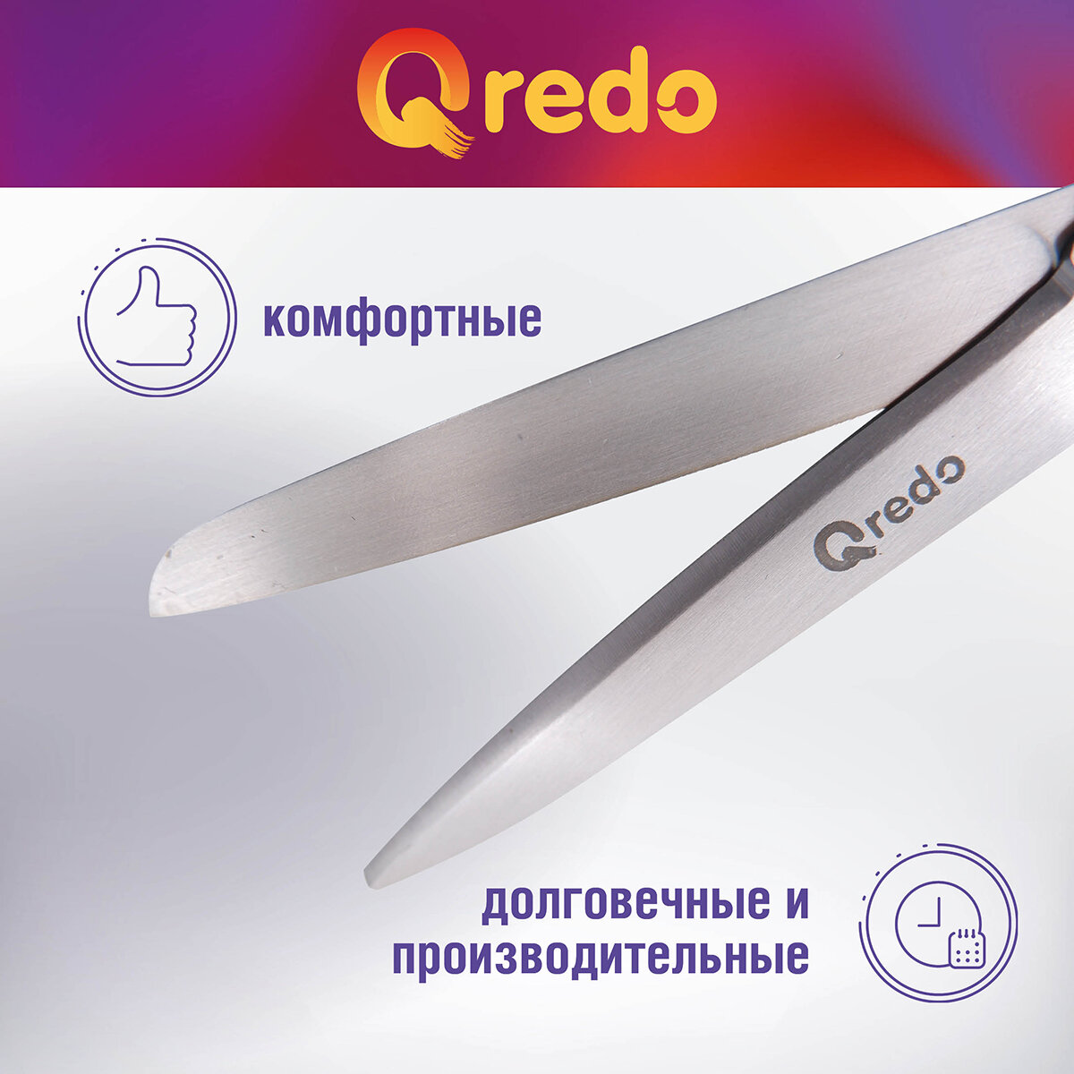 Ножницы 17,8 см QREDO ADAMANT 3D лезвие, эргономичные ручки, серый/синий, пластик, прорезиненные