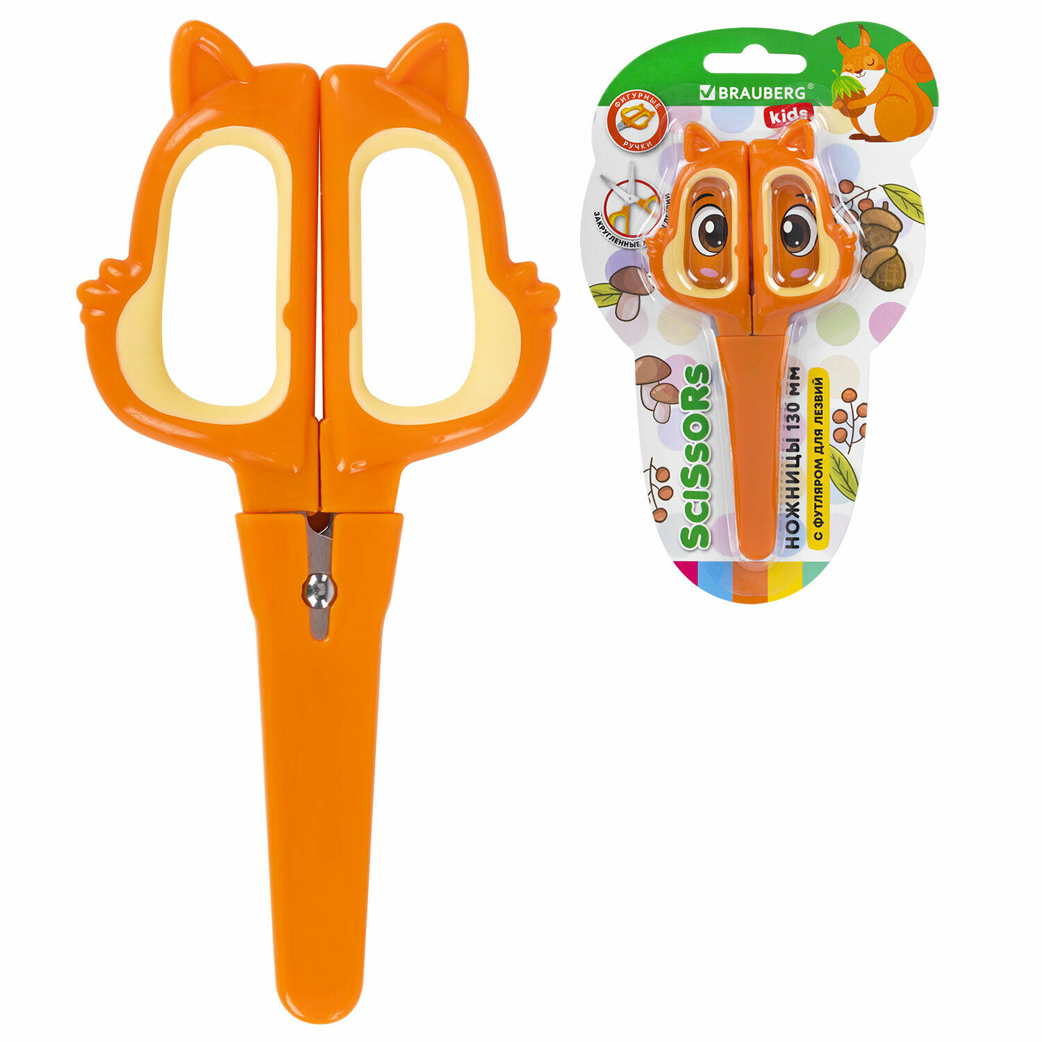 Ножницы канцелярские детские безопасные для бумаги и картона, для школы и творчества, закругленные концы, чехол, Brauberg Kids Белочка, 238353 интересное: