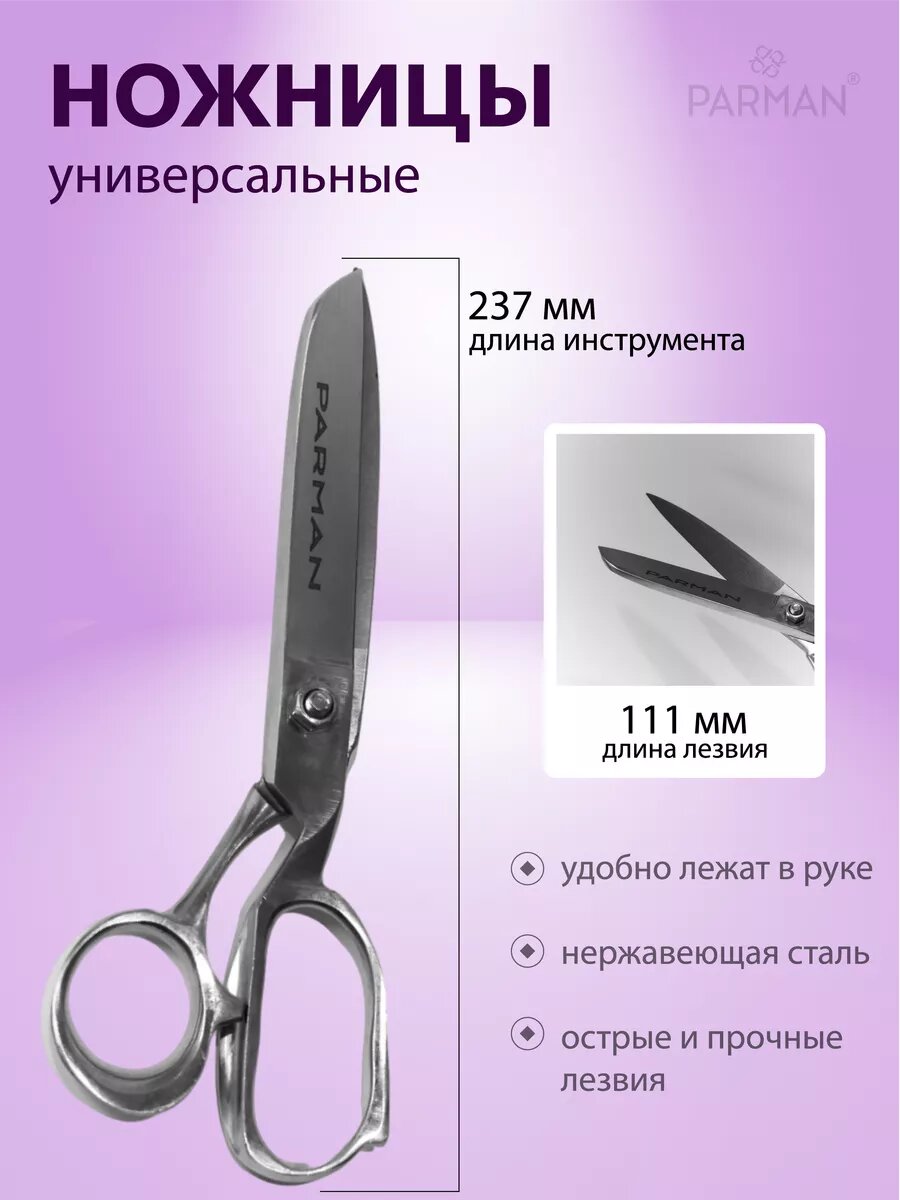 Ниже Вы можете прочитать отзывы на Портновские ножницы PARMAN "Medium", ознакомится с подробными характеристиками, посмотреть интересные обзоры и фотографии на Портновские ножницы PARMAN "Medium".