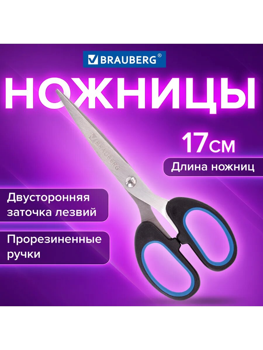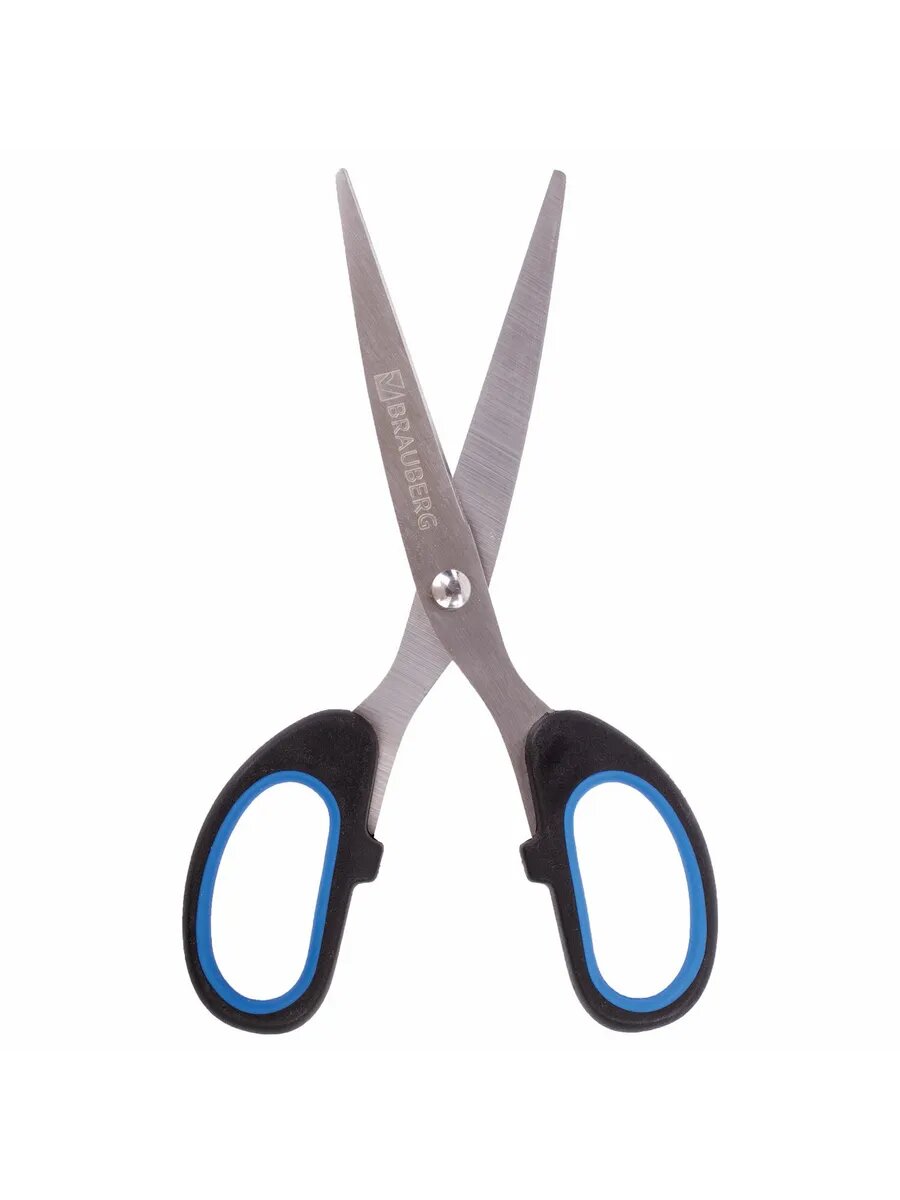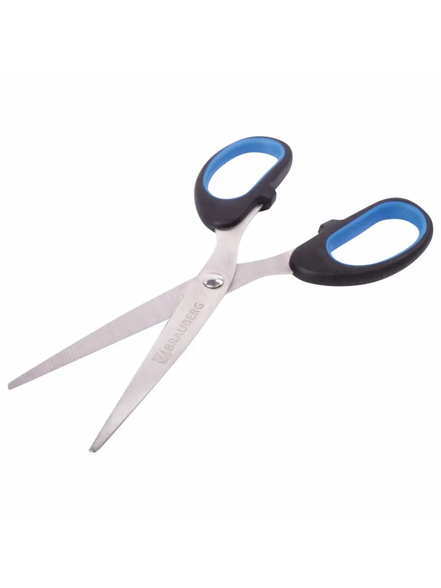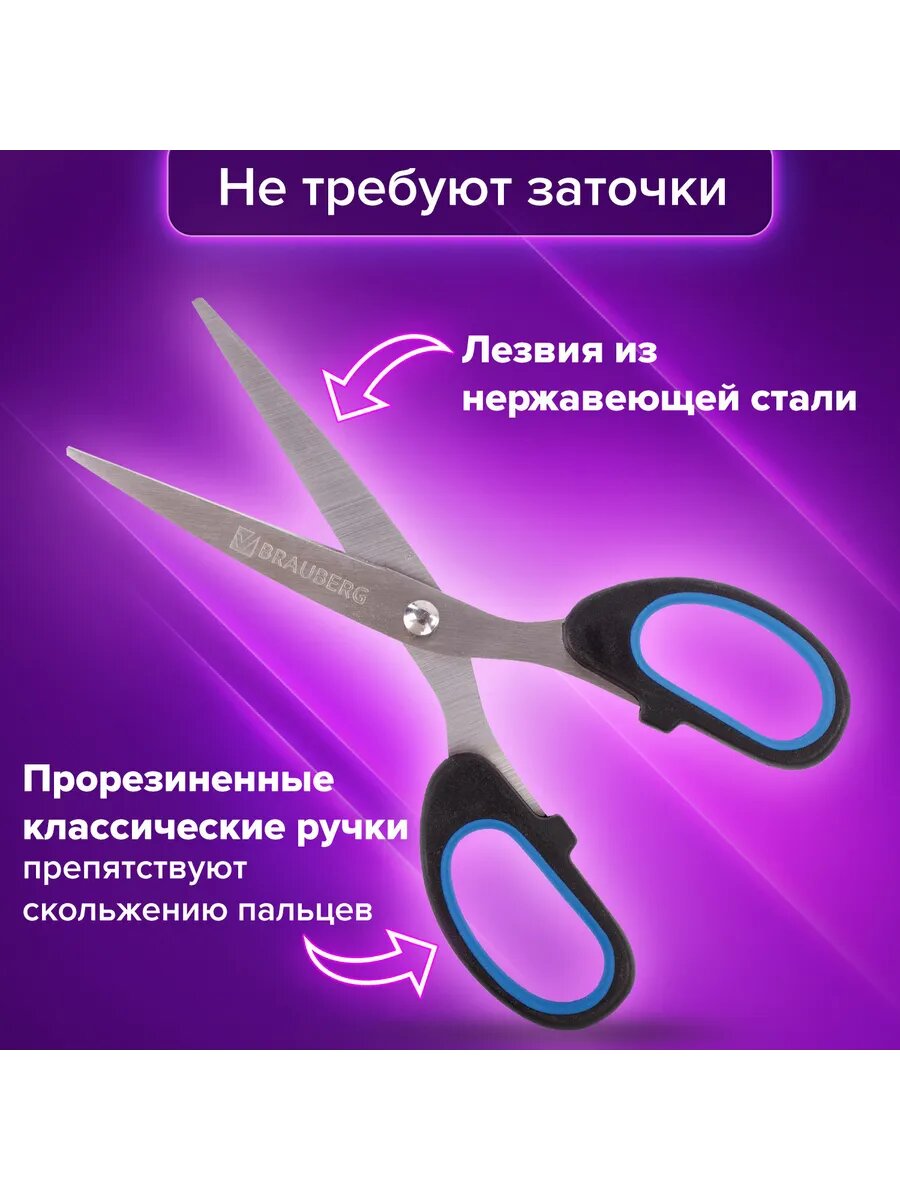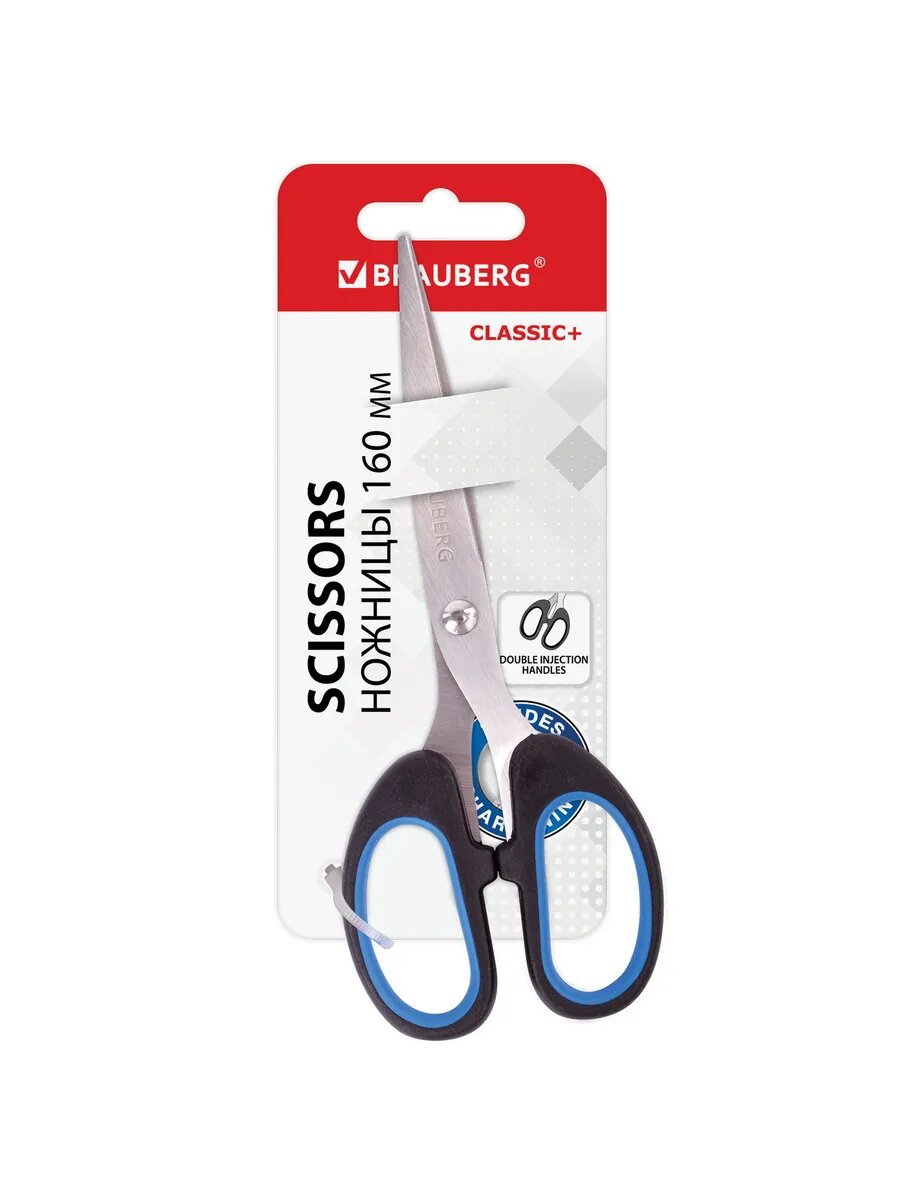 Ножницы BRAUBERG "Classic+", комплект 24 шт., 205 мм, черно-синие, классической формы, резиновые вставки, 236449