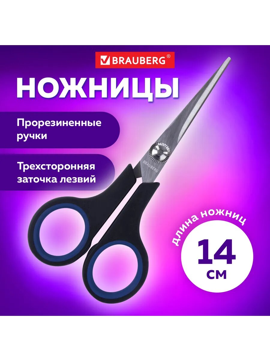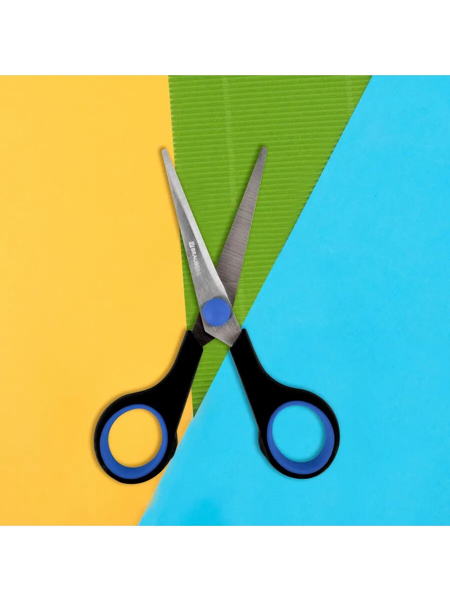 Ножницы BRAUBERG "Classic+", комплект 24 шт., 205 мм, черно-синие, классической формы, резиновые вставки, 236449