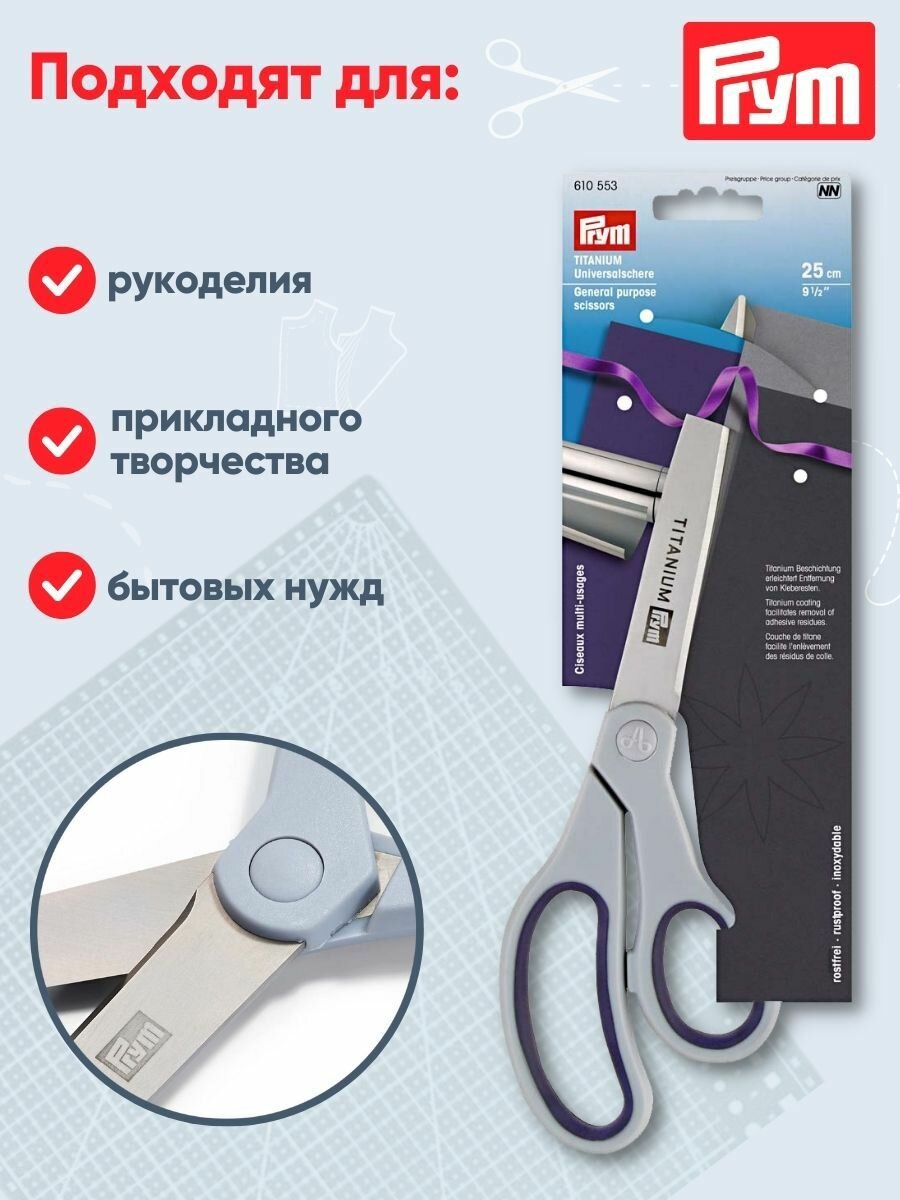 Ножницы канцелярские универсальные Titanium, 25 см, Prym, 610553 интересное: