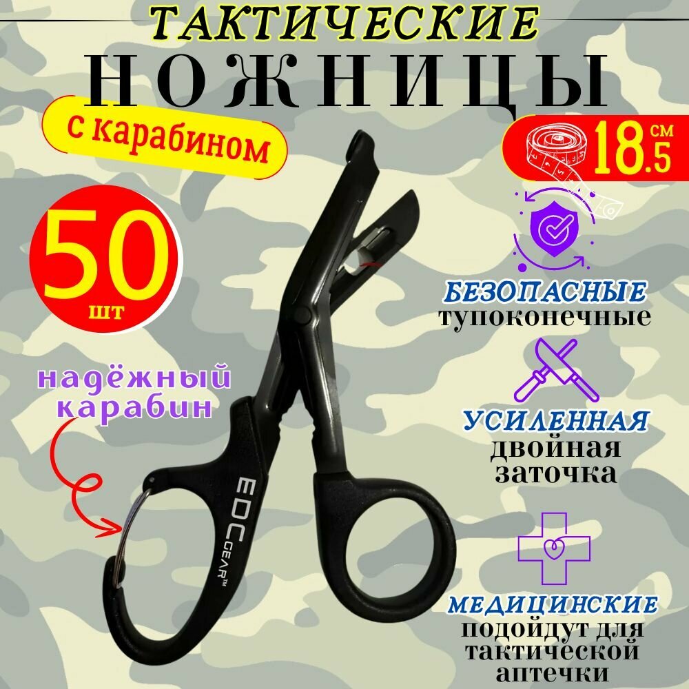 Купить Ножницы тактические медицинские Эсмарха с карабином тупоконечные двойная заточка EDC gear черные 50 шт