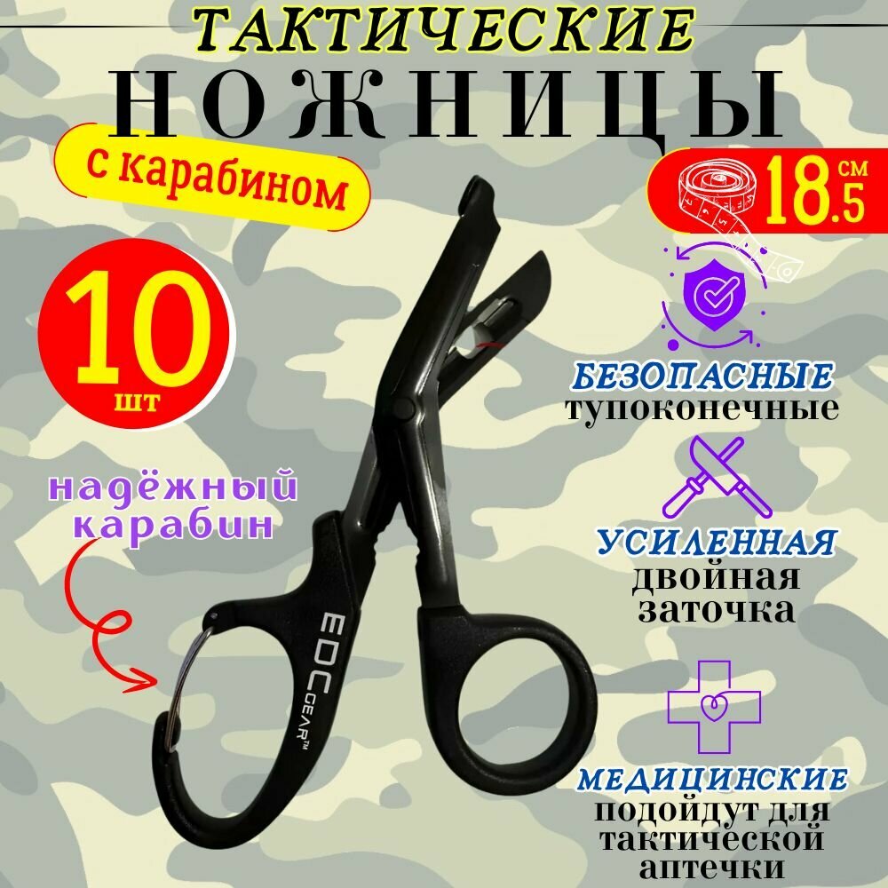 Купить Ножницы тактические медицинские Эсмарха с карабином тупоконечные двойная заточка EDC gear черные 10 шт