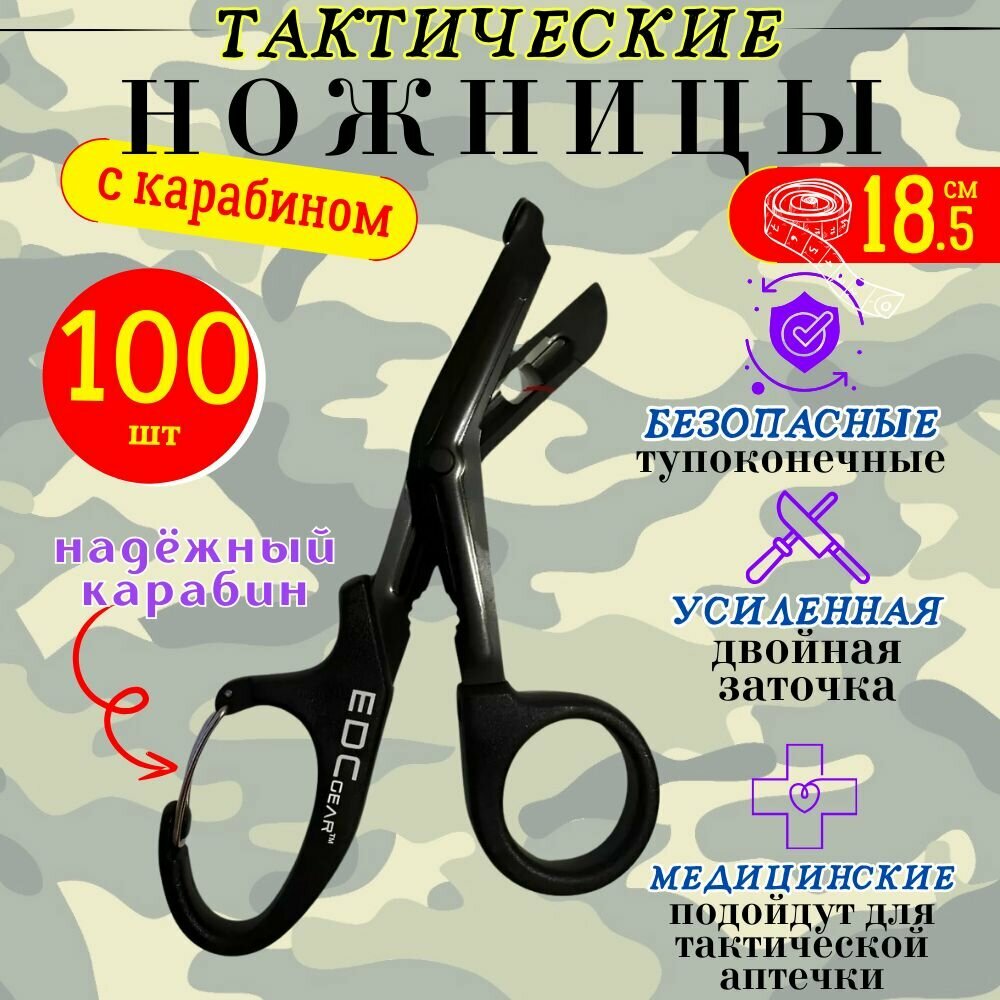 Купить Ножницы тактические медицинские Эсмарха с карабином тупоконечные двойная заточка EDC gear черные 100 шт
