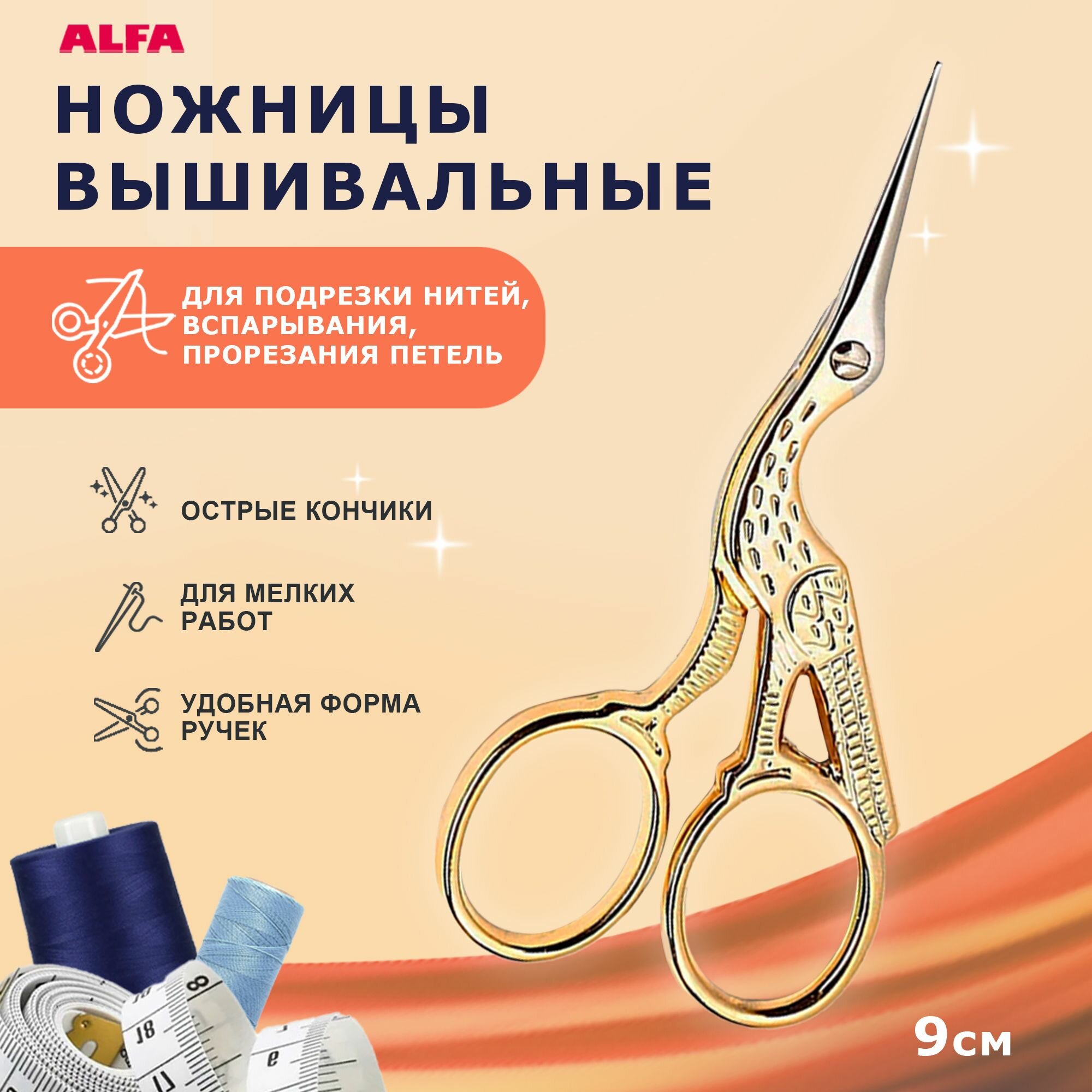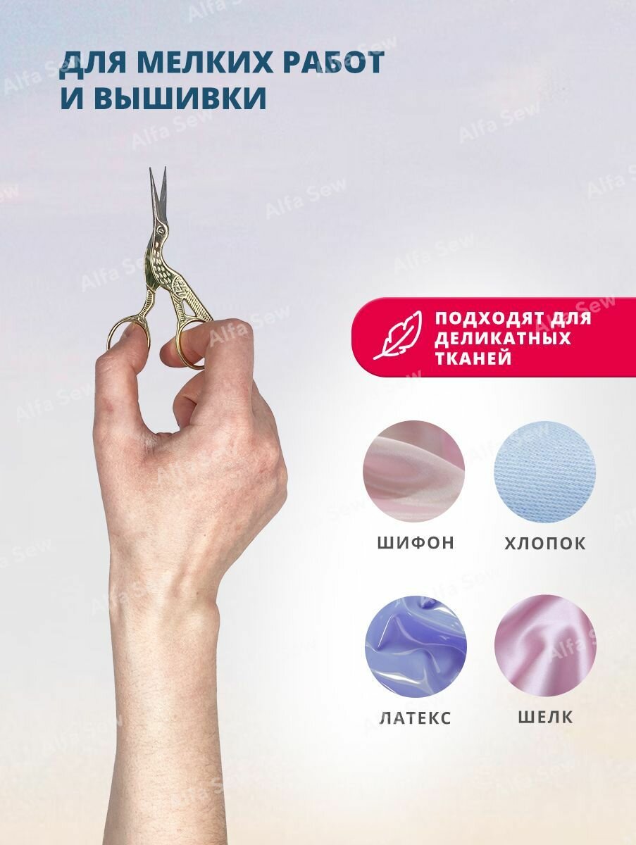 Ножницы вышивальные 9см, для шитья и рукоделия, Цапельки ALFA AF101-30 интересное: