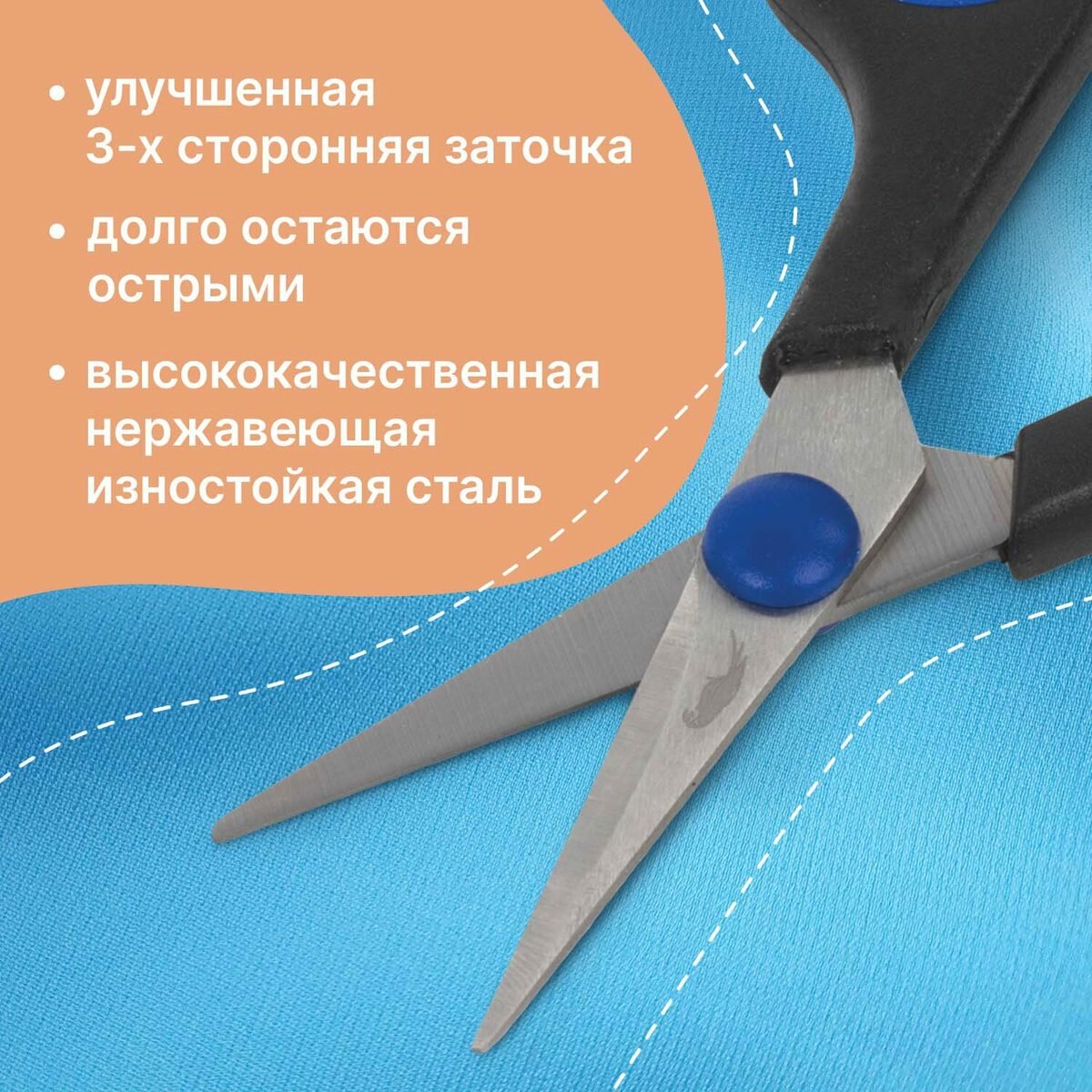 Купить Ножницы для рукоделия Остров сокровищ 120мм, 3-х сторонняя заточка, черно-синие (237104)