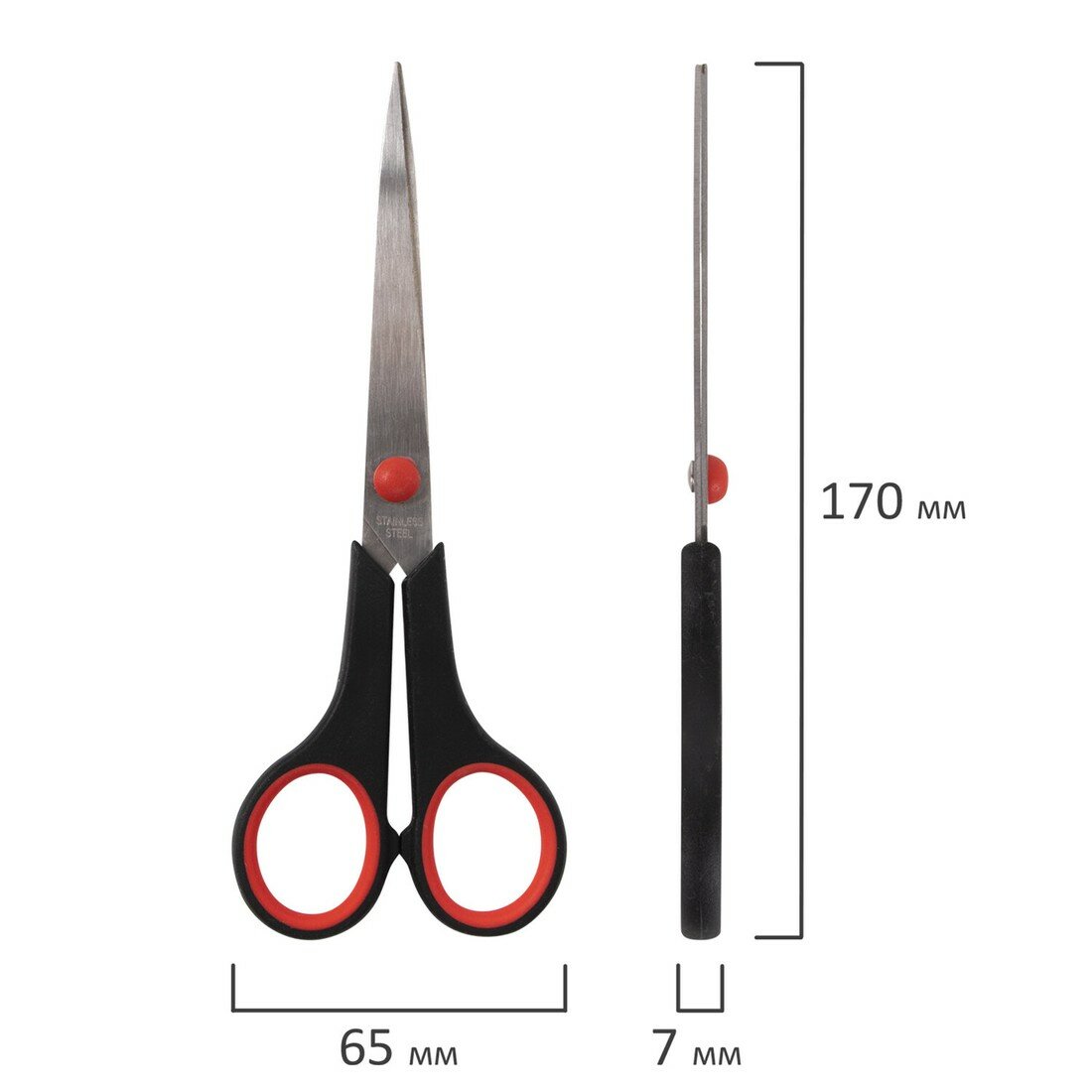 Ножницы STAFF EVERYDAY, 170 мм, бюджет, резиновые вставки, черно-красные, ПВХ чехол, 237498 интересное:
