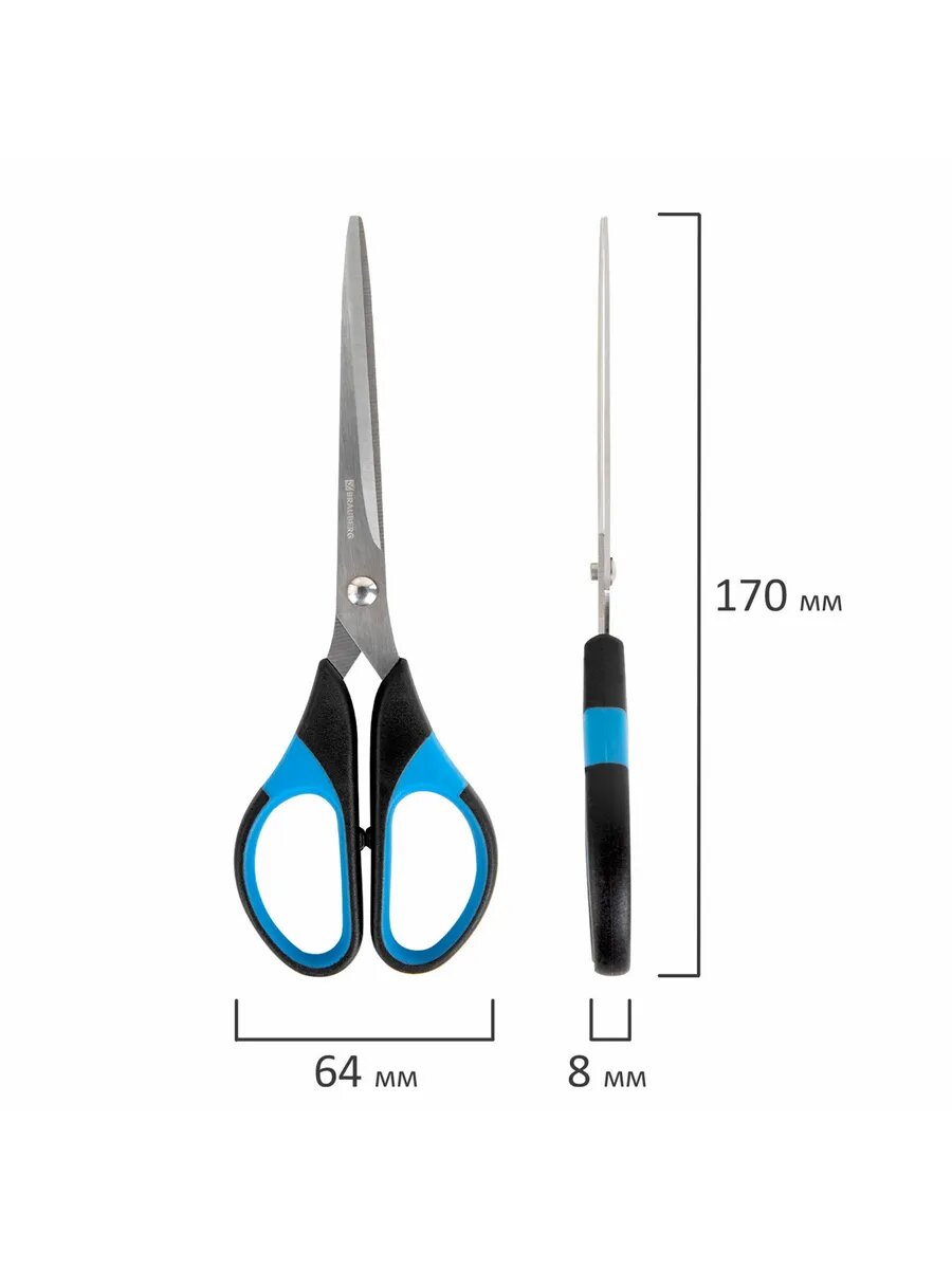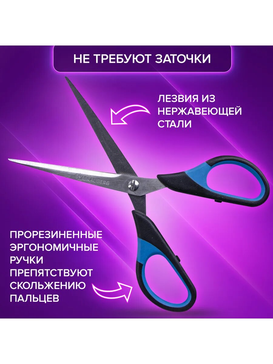 Ножницы BRAUBERG "Classic+", комплект 24 шт., 205 мм, черно-синие, классической формы, резиновые вставки, 236449
