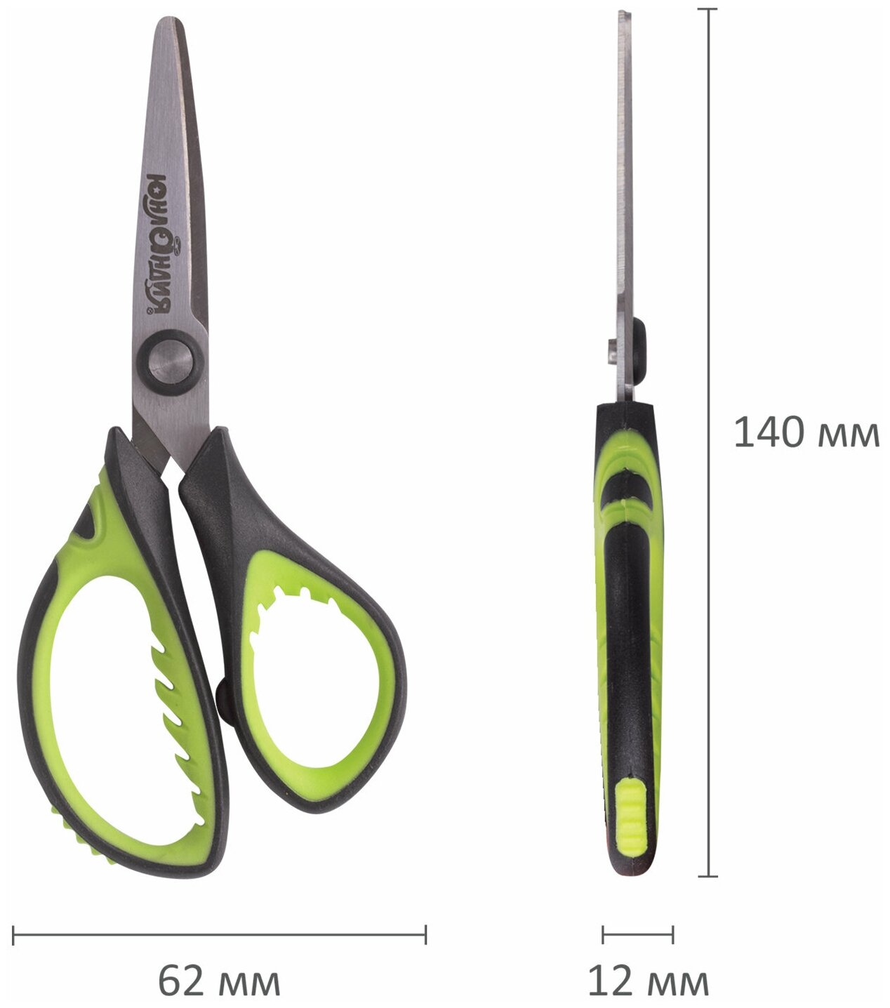 Ножницы юнландия "BASIC", 140 мм, ребристые резиновые вставки, черно-салатовые, европодвес, 236990, 2 штуки интересное: