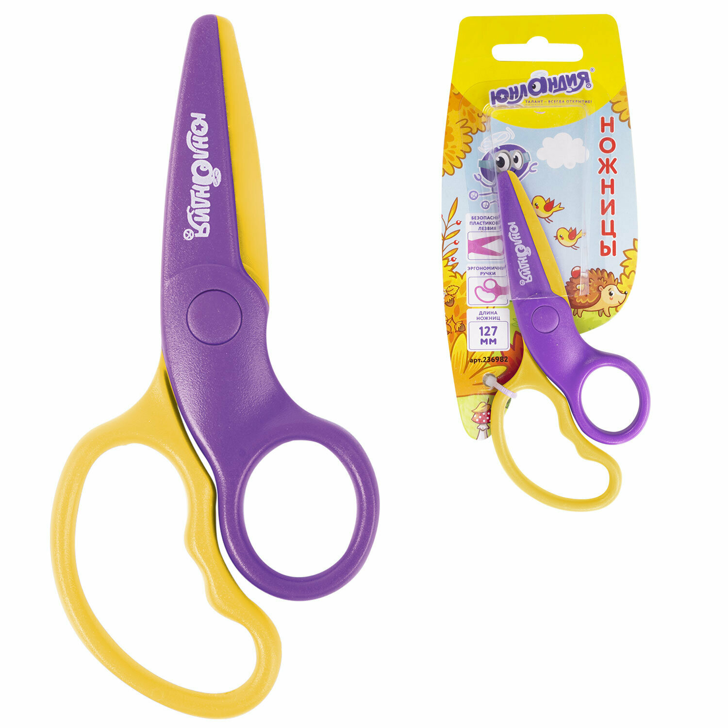 Ножницы юнландия "ёжик", 127 мм, безопасные пластиковые лезвия, эргономичные ручки, ассорти, 236982, 2шт в компл. интересное: