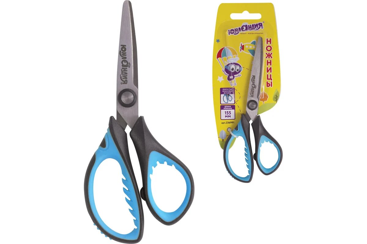 Юнландия Ножницы BASIC, 155 мм, ребристые резин вставки, черно-голубые, 236991 интересное: