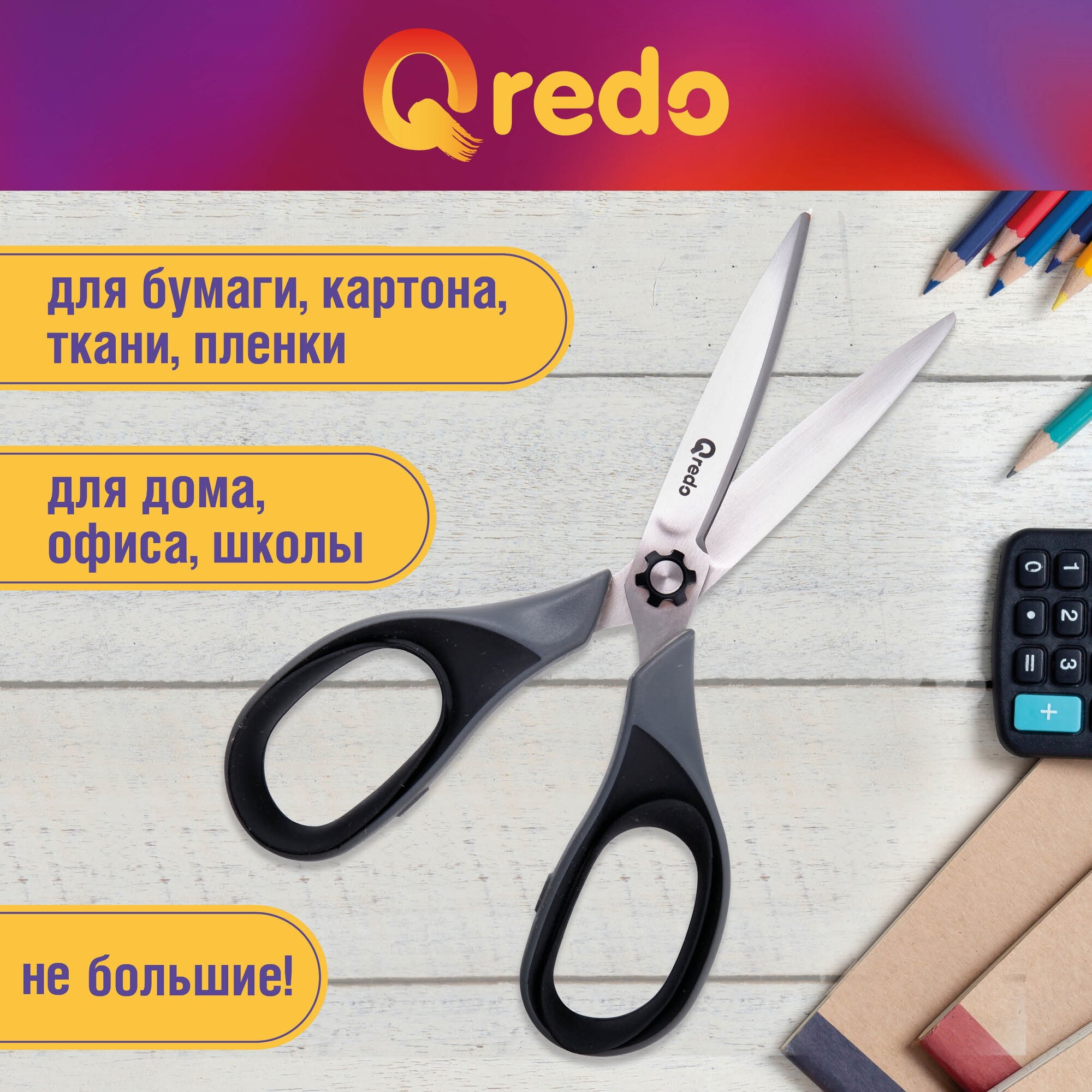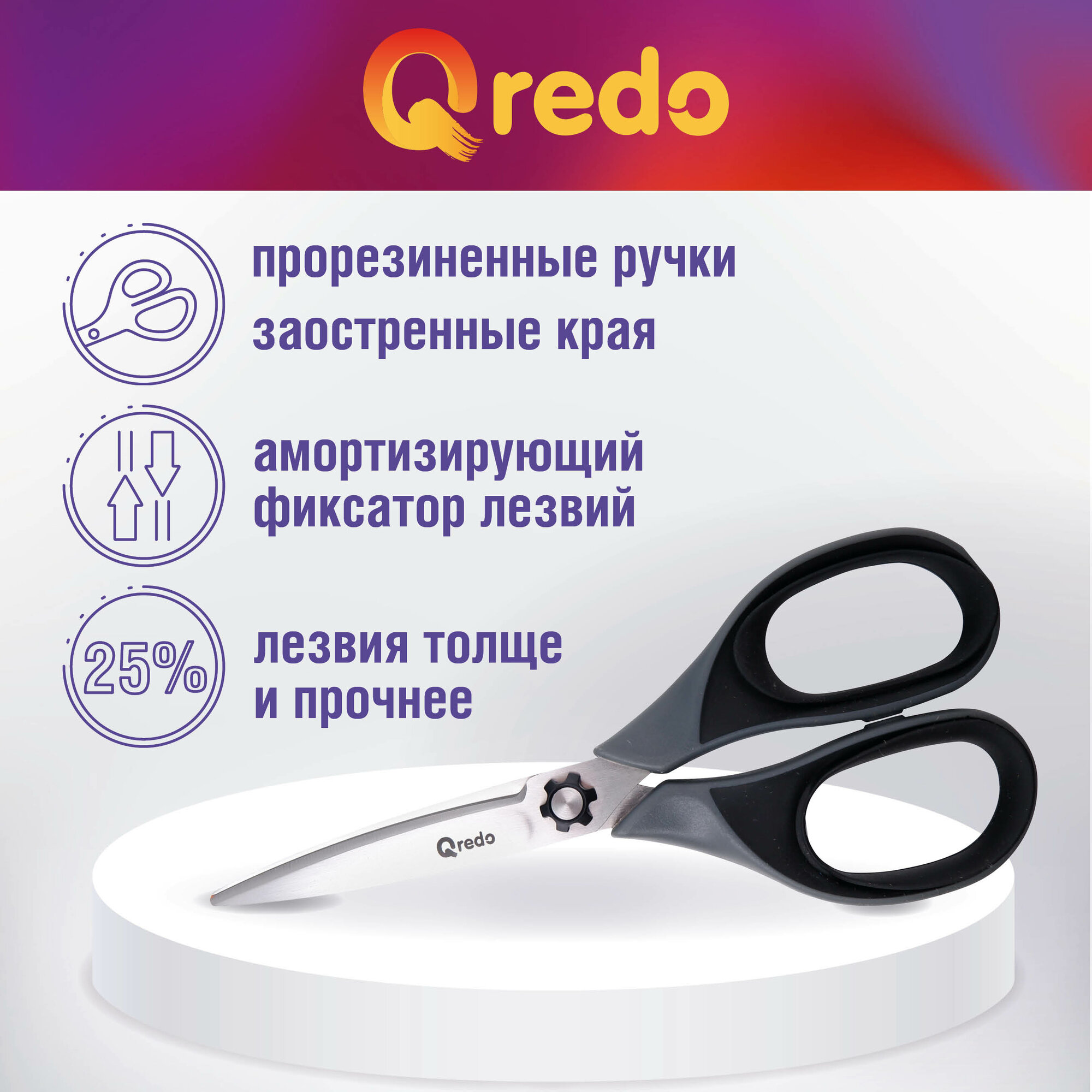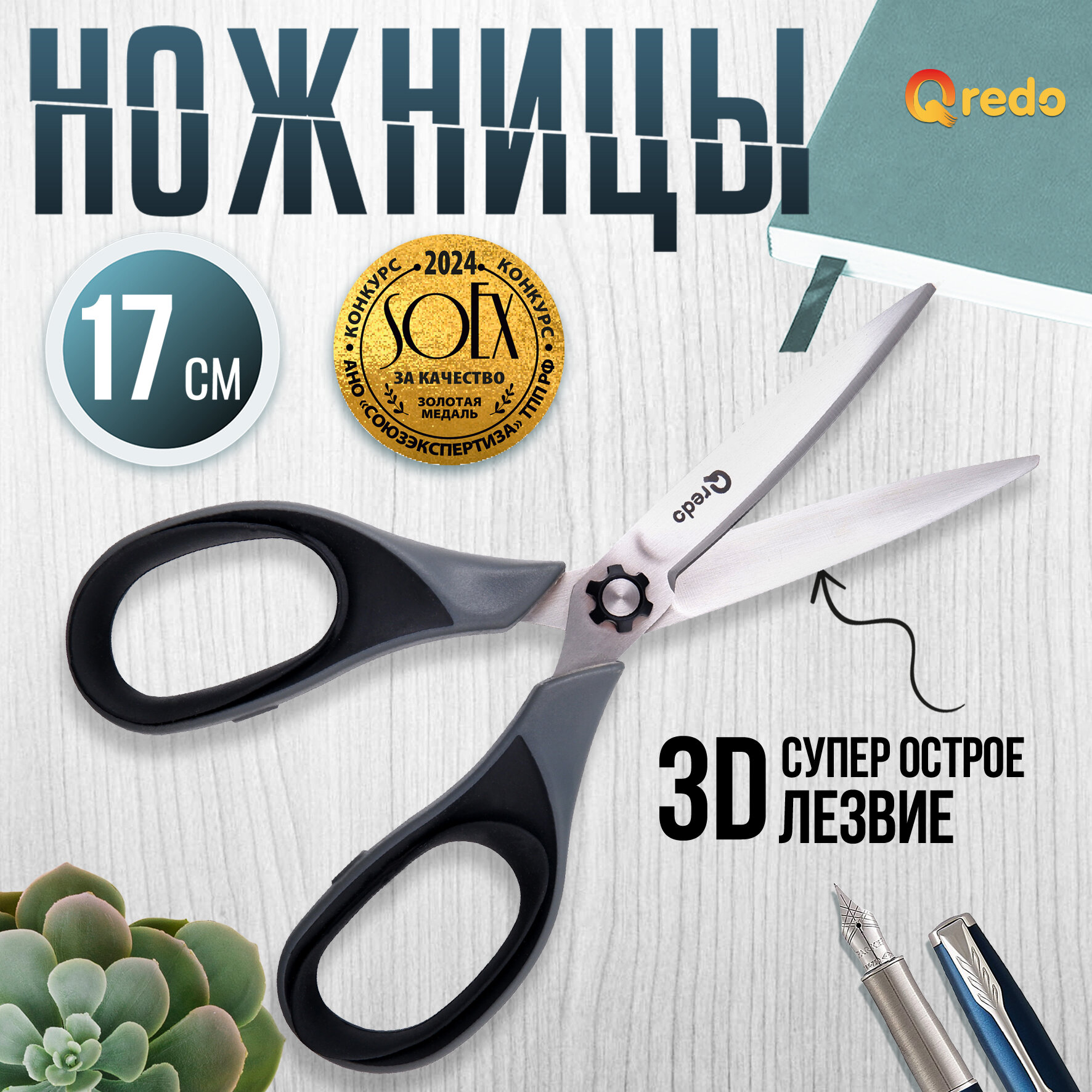 Ножницы 17 см QREDO SHARK 3D лезвие, серый/черный, пластиковые, прорезиненные интересное: