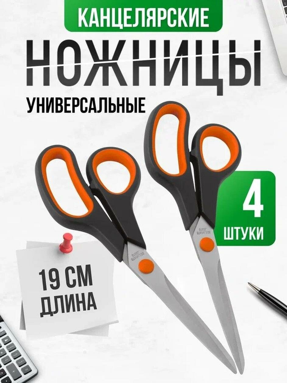 Ножницы канцелярские универсальные для офиса, школы, 4 шт, 19 см интересное: