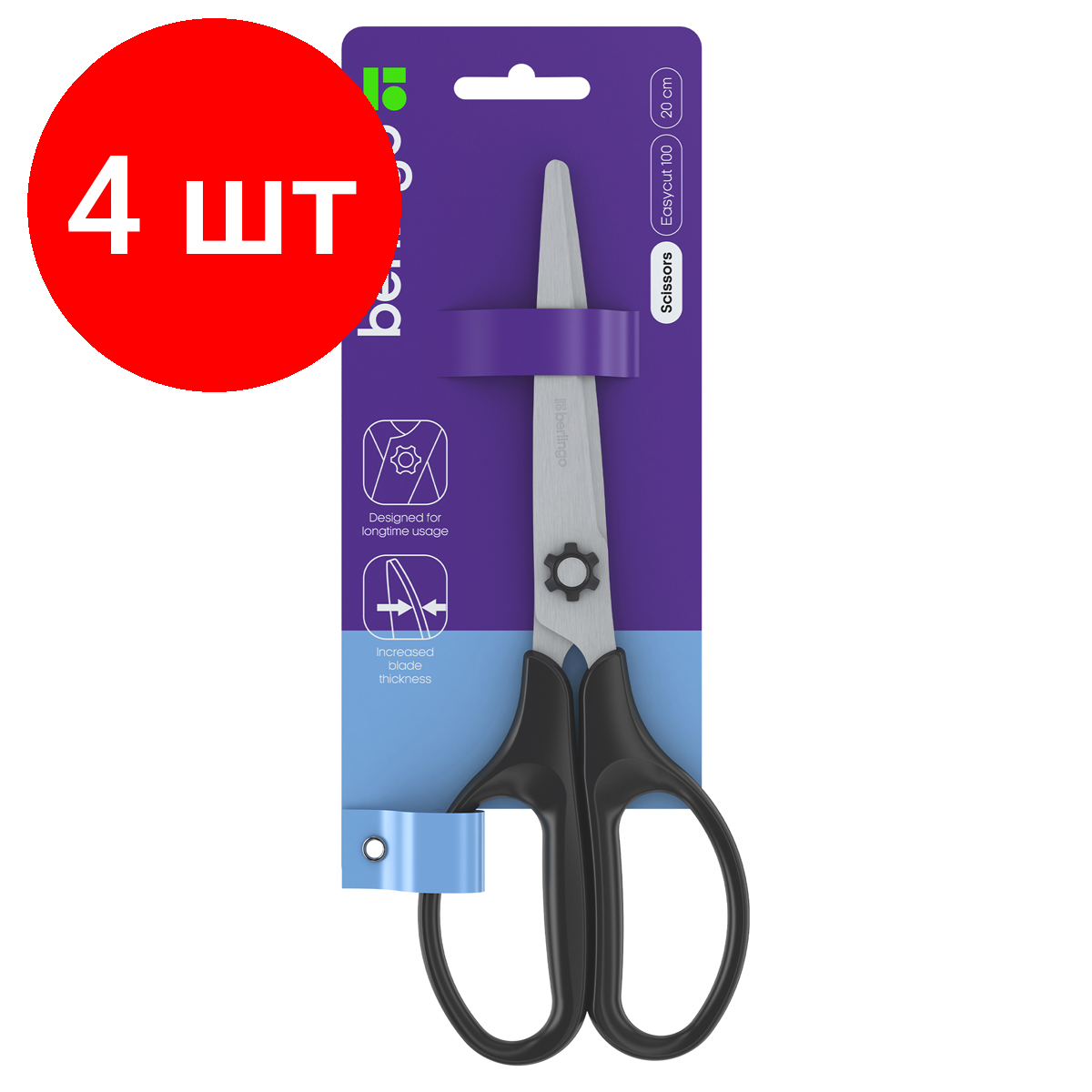 Комплект 4 шт, Ножницы Berlingo "Easycut 100" 20см, европодвес интересное:
