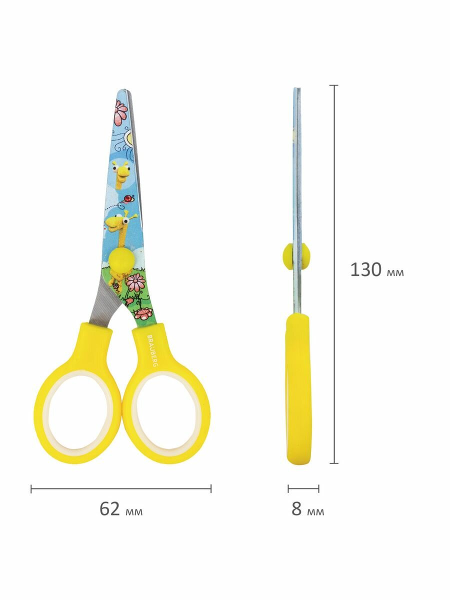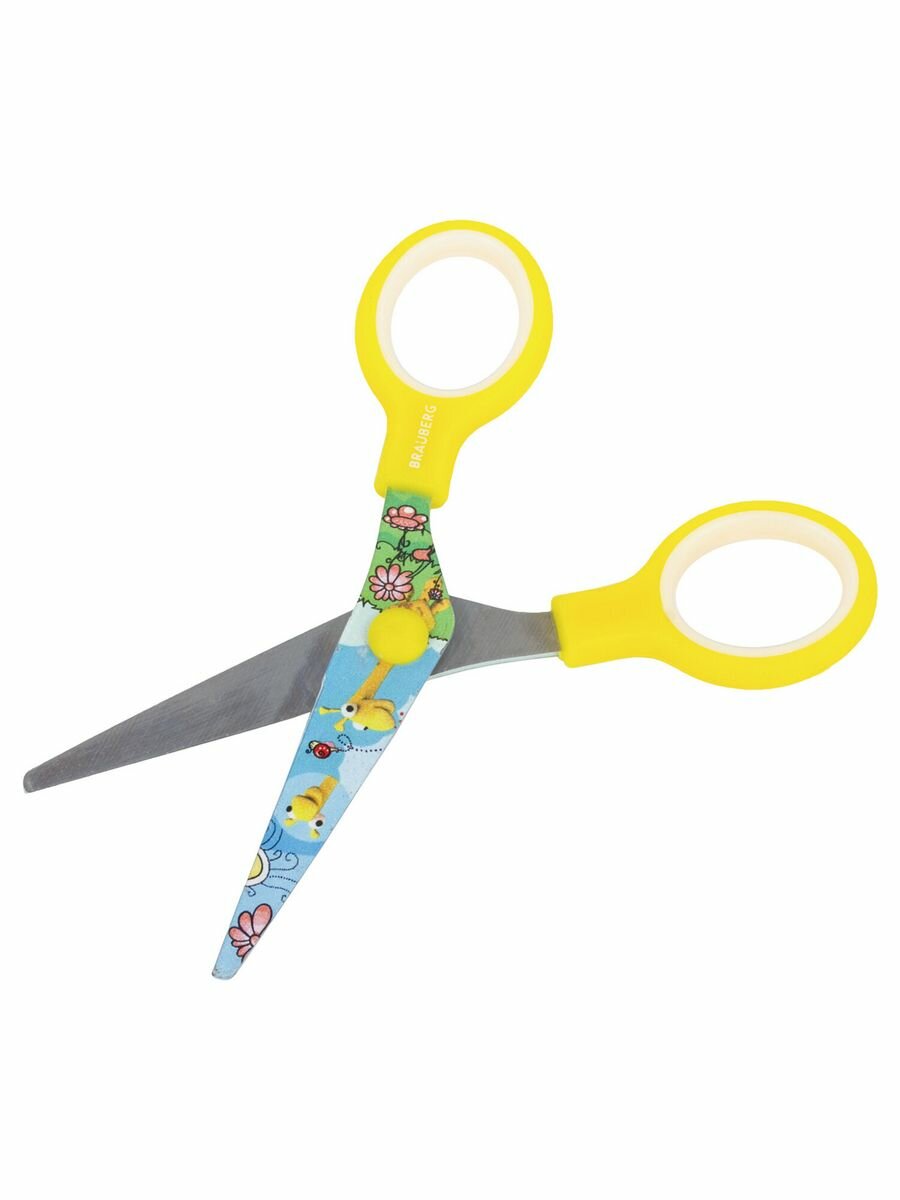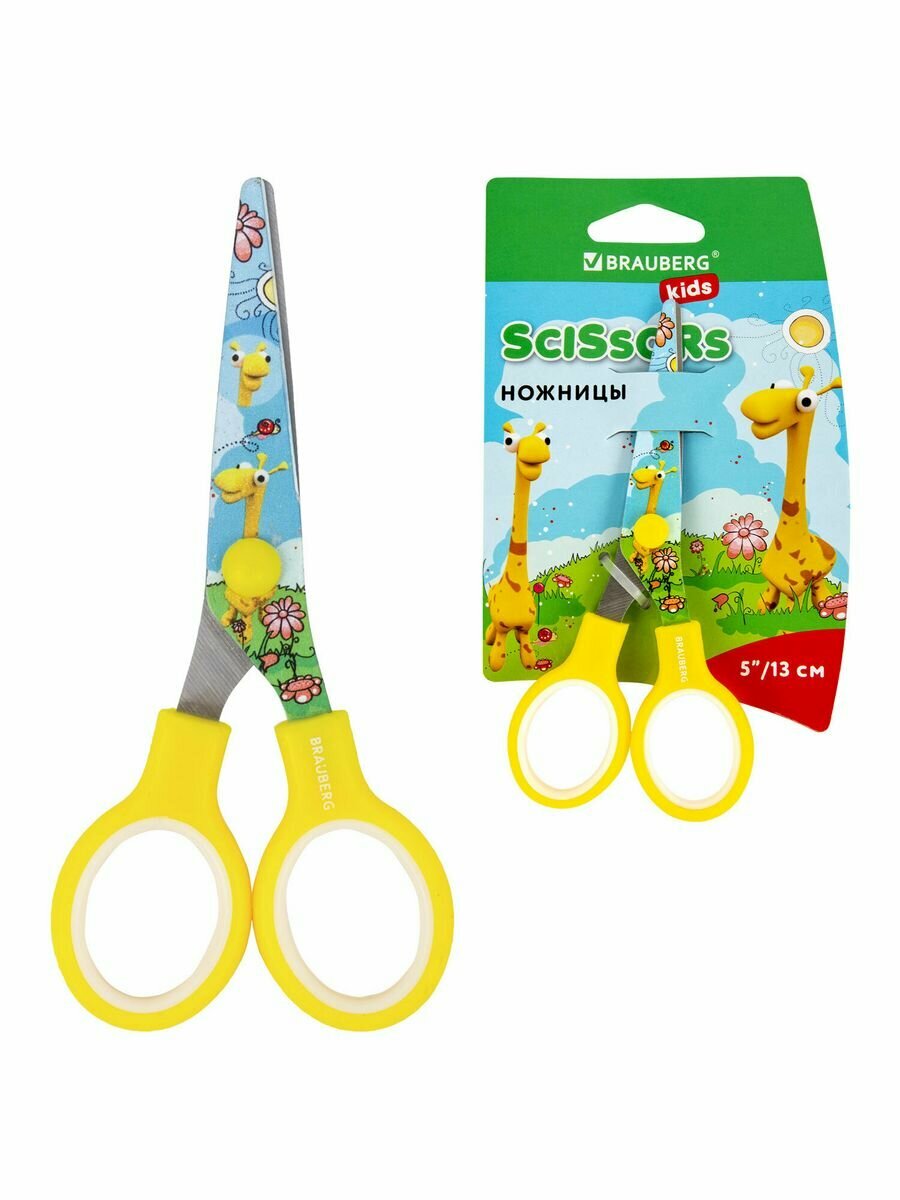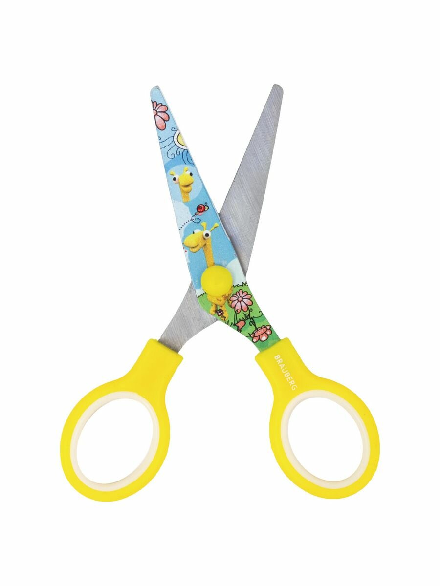 Ножницы BRAUBERG "KIDS", для детского творчества, скругленные концы, 13 см, желто/голубые интересное: