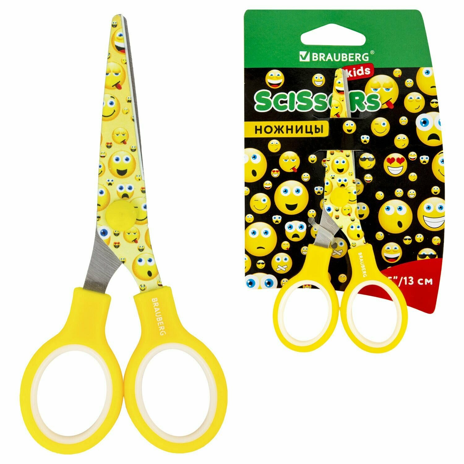 Ножницы Brauberg "Kid Series", 130 мм, с цветной печатью "Смайлики", желто-белые (232274) интересное: