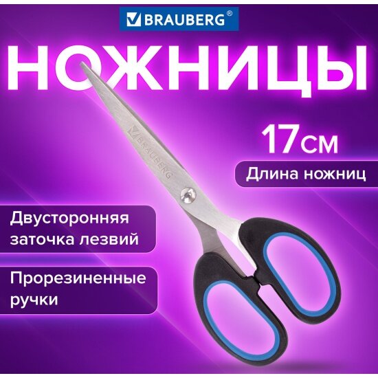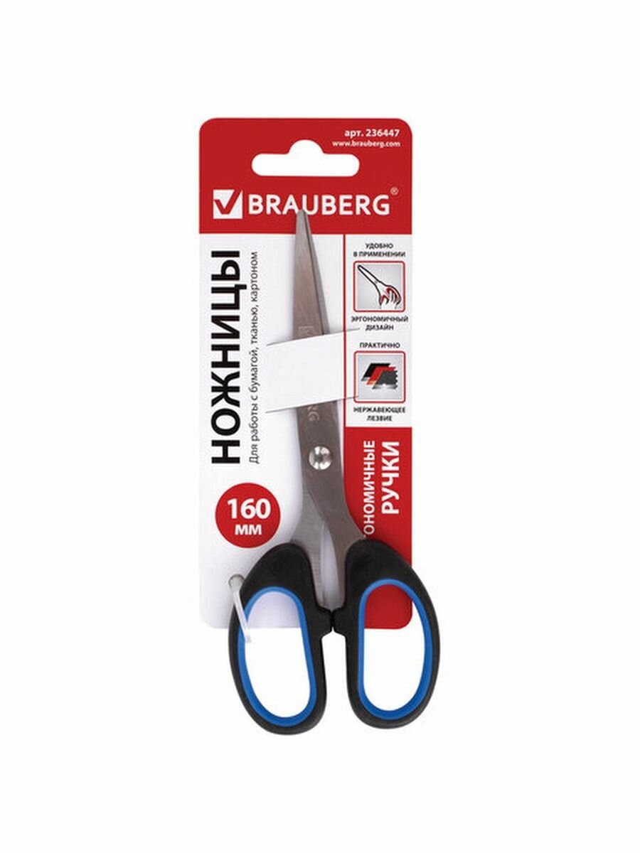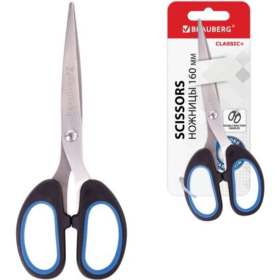 Ножницы детские Brauberg "Classic+", 160 мм, черно-синие, классической формы, резиновые вставки, 236447 интересное:
