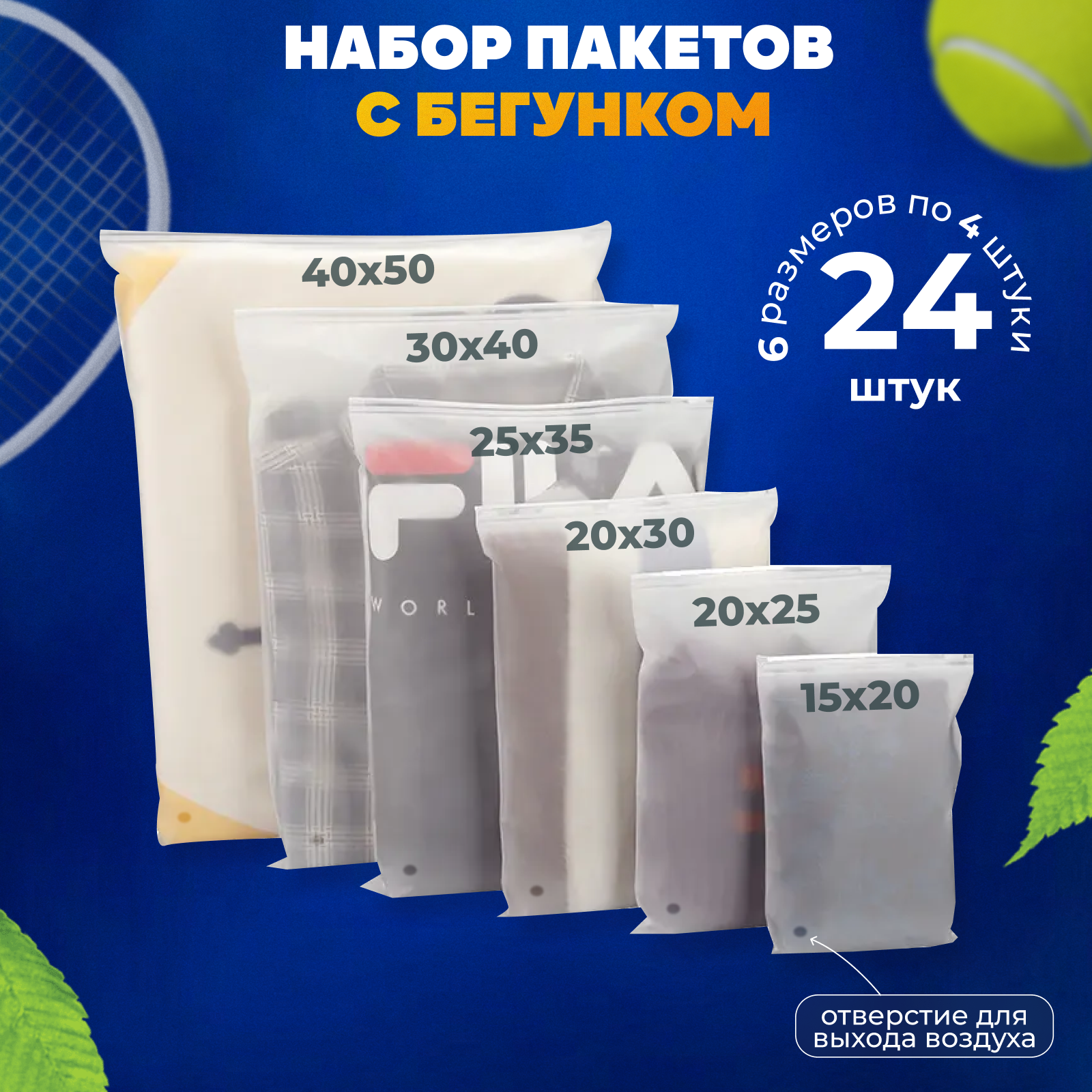 Купить Зип пакеты с бегунком AllPackIn разных размеров, набор из 24 шт матовых пакетов