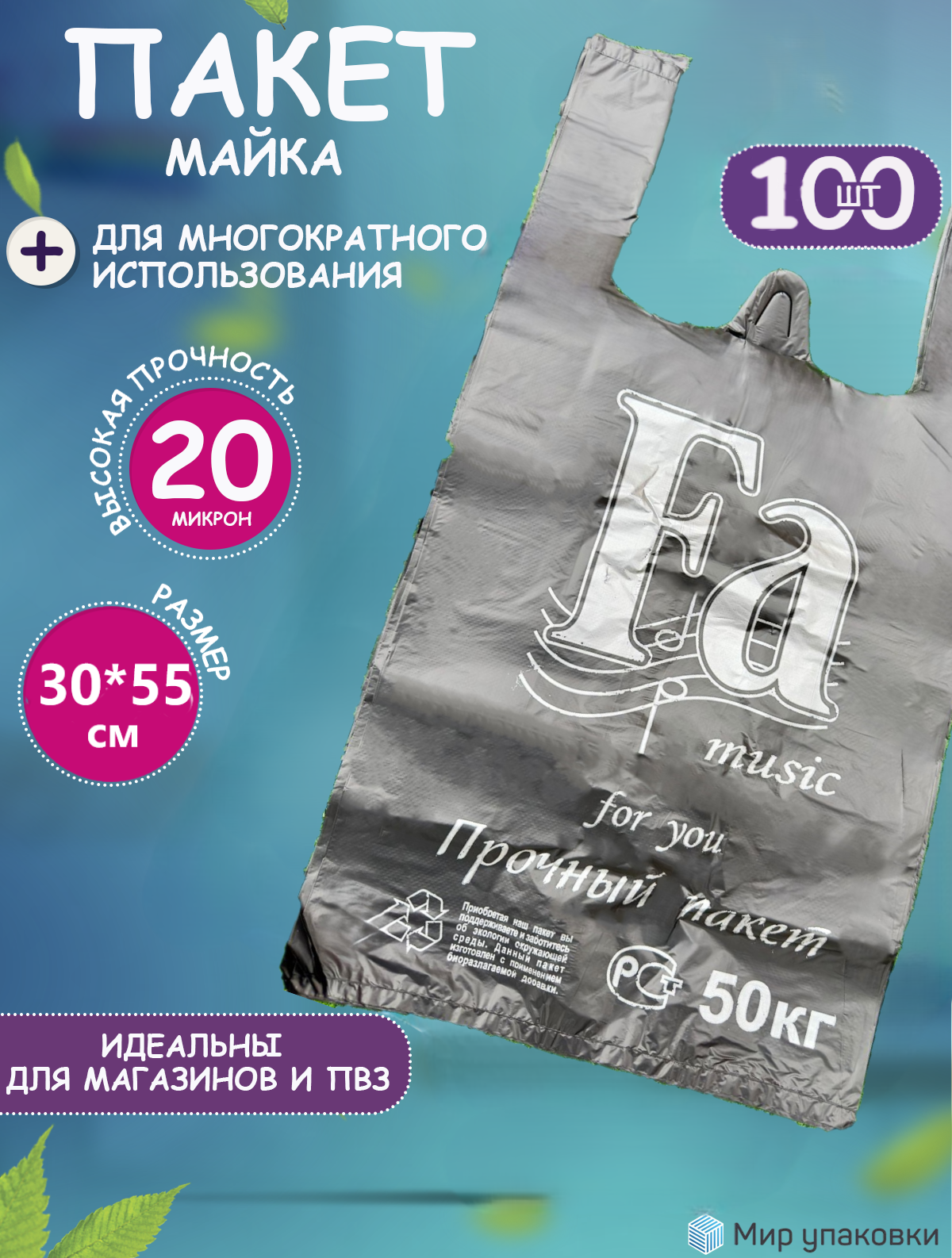 Ниже Вы можете прочитать отзывы на Пакет майка FA 30*55см, цвет черный, 100шт., ознакомится с подробными характеристиками, посмотреть интересные обзоры и фотографии на Пакет майка FA 30*55см, цвет черный, 100шт..